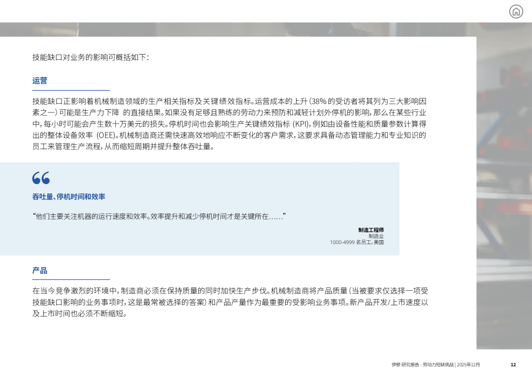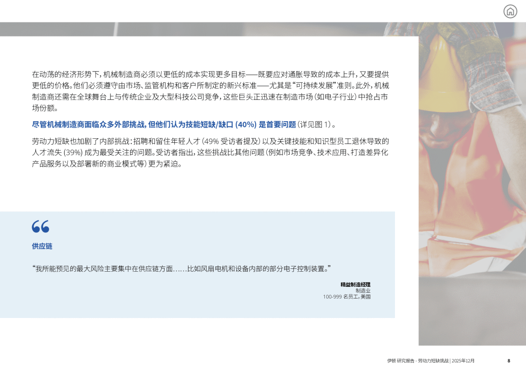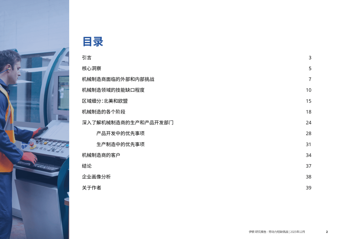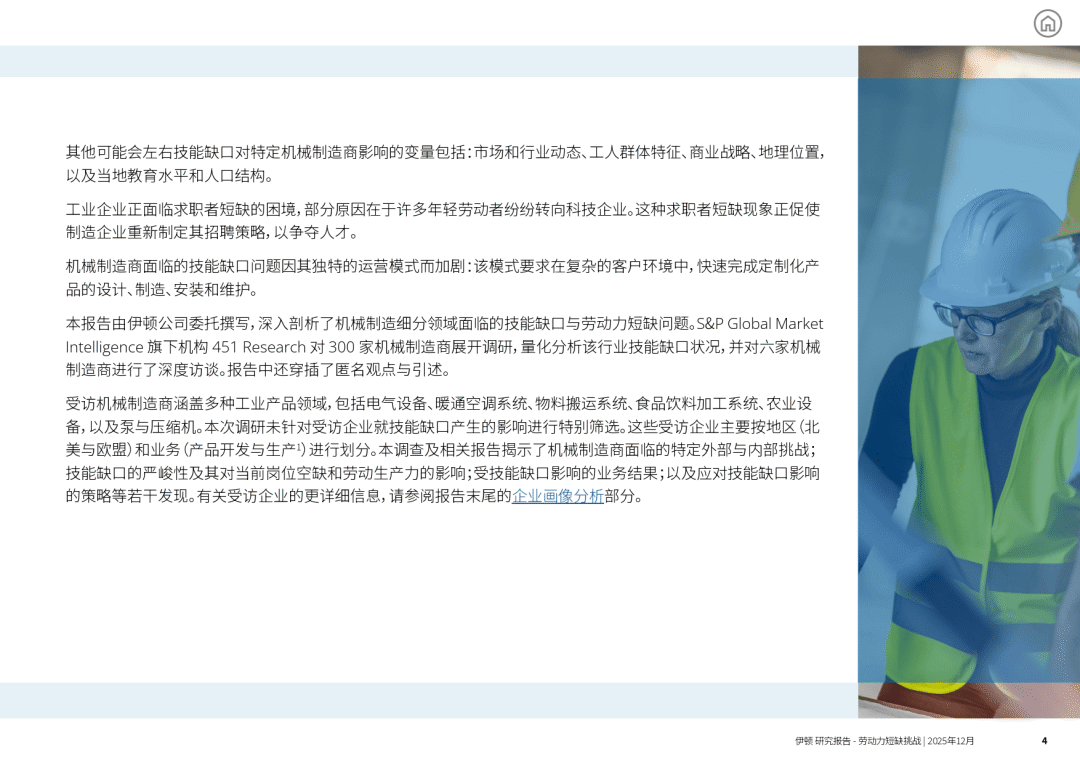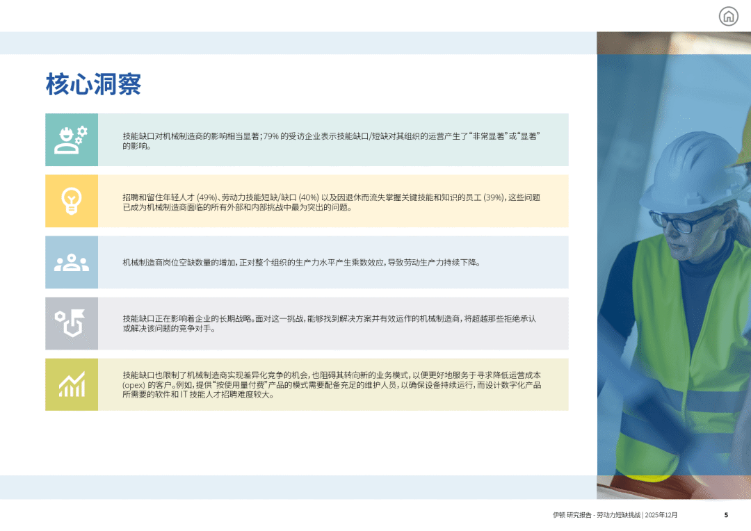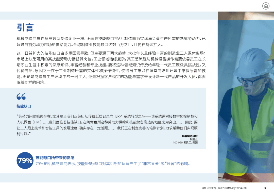 伊顿电气 2025 年 12 月发布的调研报告聚焦全球机械制造业劳动力短缺挑战,基于对 300 家机械制造商的调研及六家企业深度访谈,揭示了技能缺口对行业的深远影响与应对趋势。
