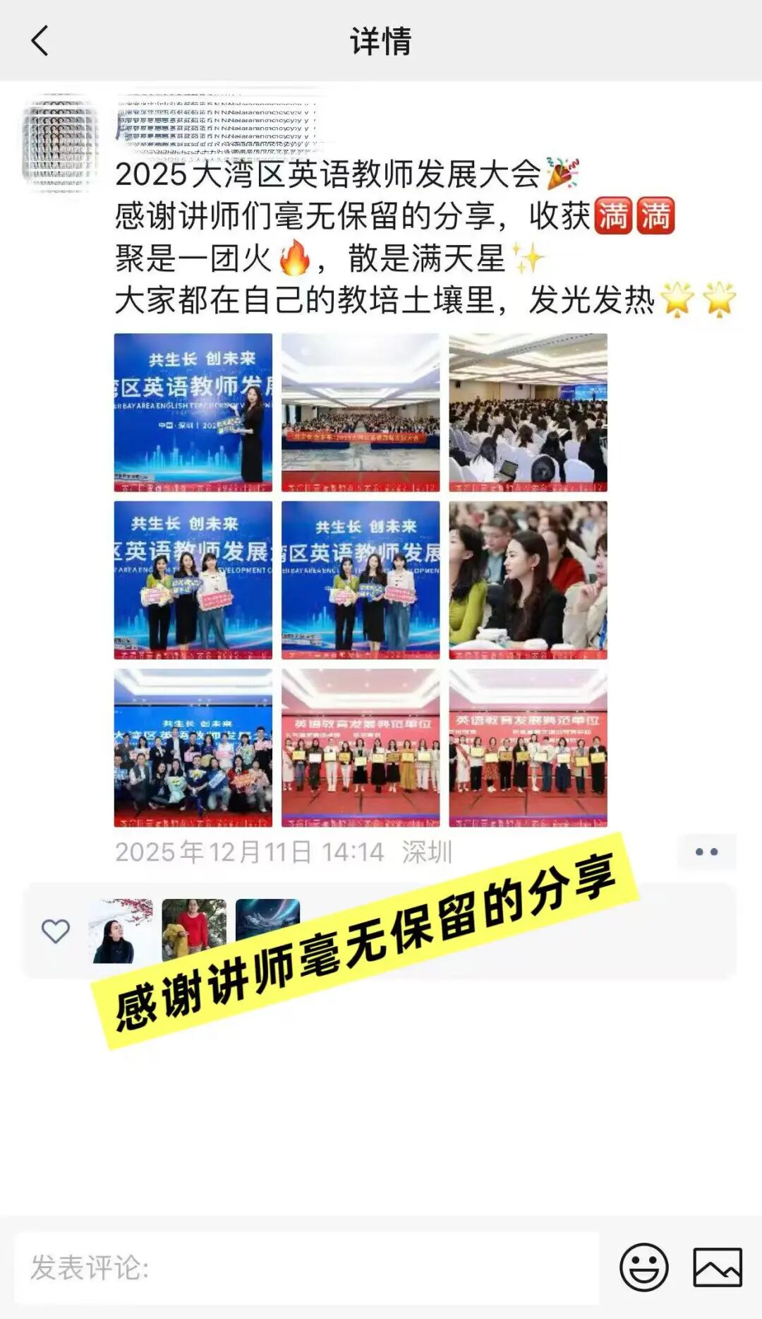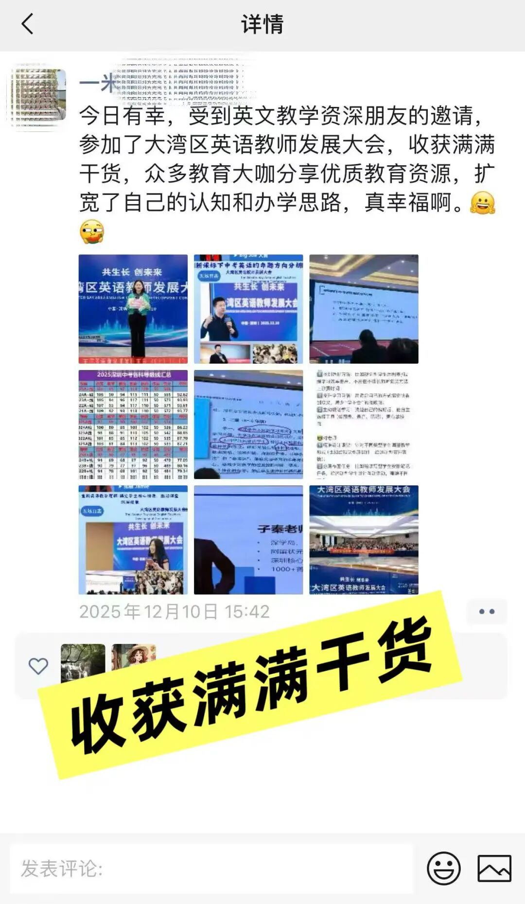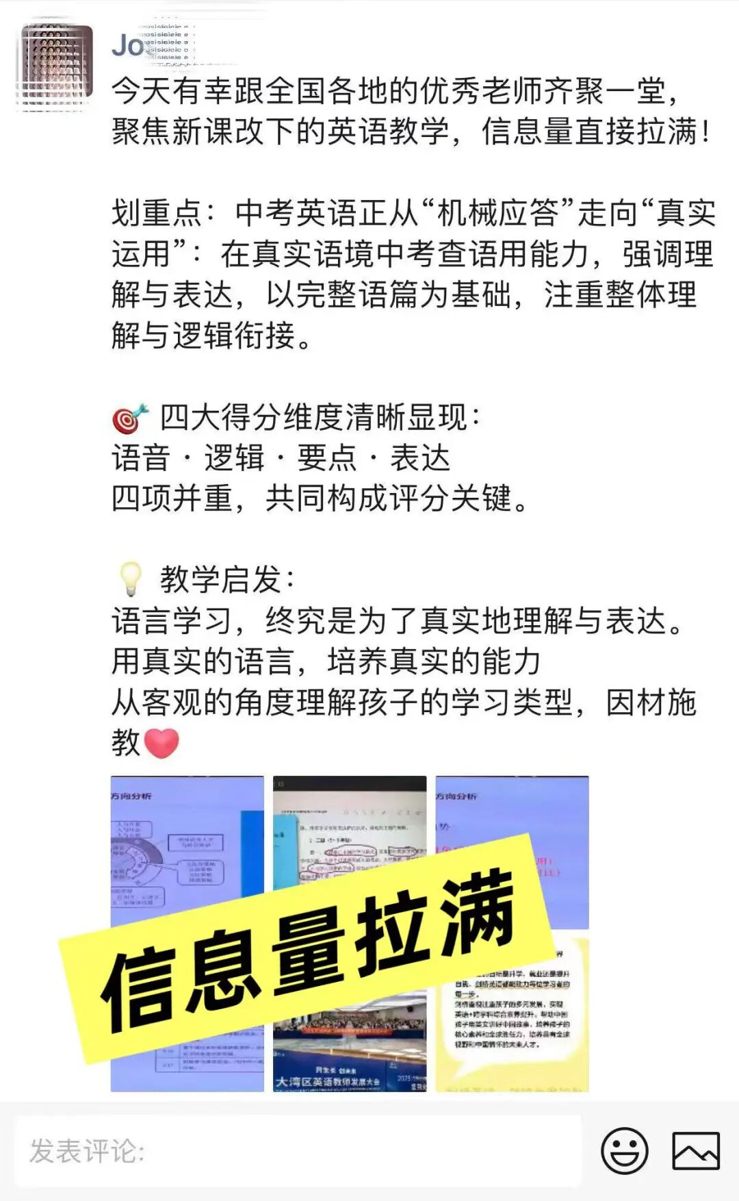 活动虽已落幕,余音依然绕梁。微信群内的精彩复盘、朋友圈的真情分享、短视频平台的瞬间记录,汇聚成一股强大的正向声浪。老师们普遍反馈,此次大会“内容扎实、组织有序、收获巨大”,不仅更新了理念,更获得了可迁移的方法,也结识了志同道合的伙伴。
