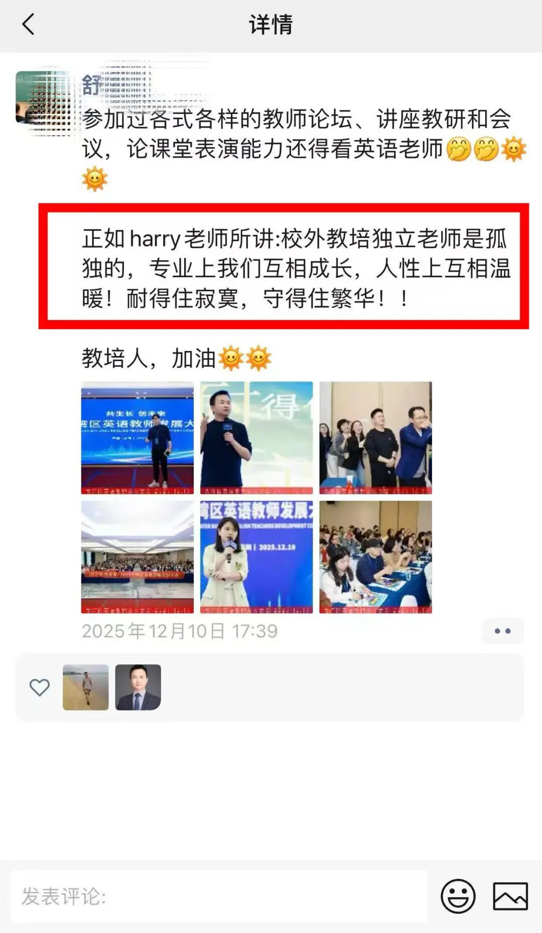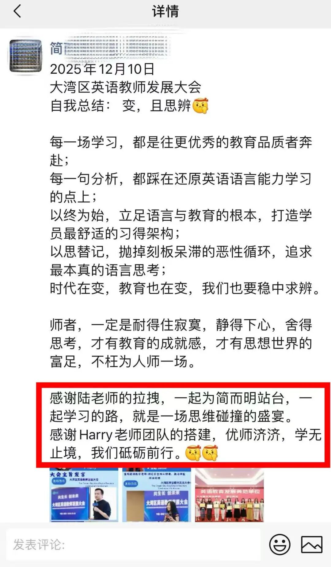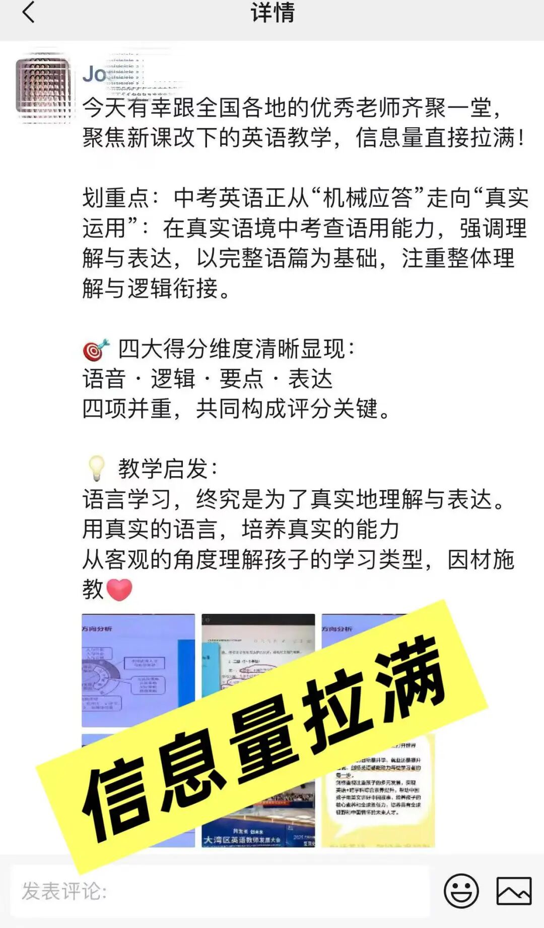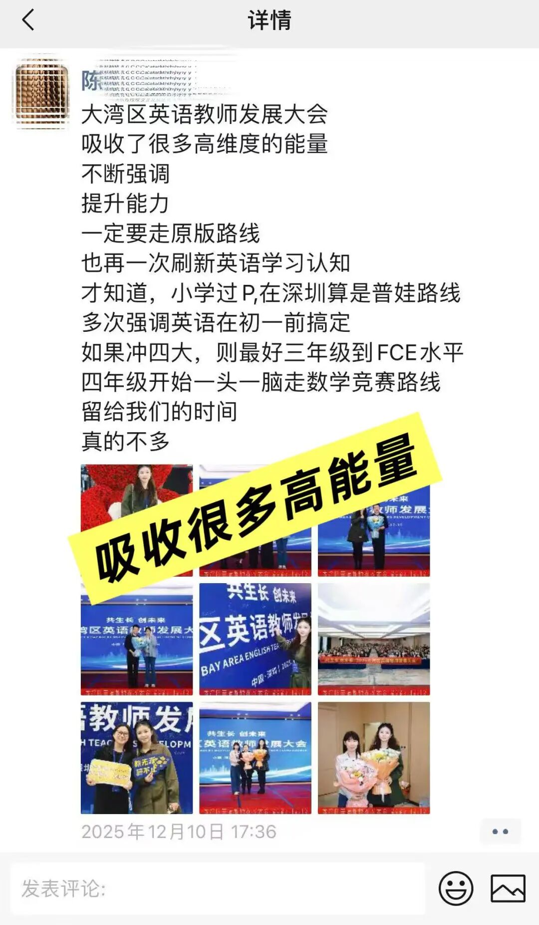 活动虽已落幕,余音依然绕梁。微信群内的精彩复盘、朋友圈的真情分享、短视频平台的瞬间记录,汇聚成一股强大的正向声浪。老师们普遍反馈,此次大会“内容扎实、组织有序、收获巨大”,不仅更新了理念,更获得了可迁移的方法,也结识了志同道合的伙伴。