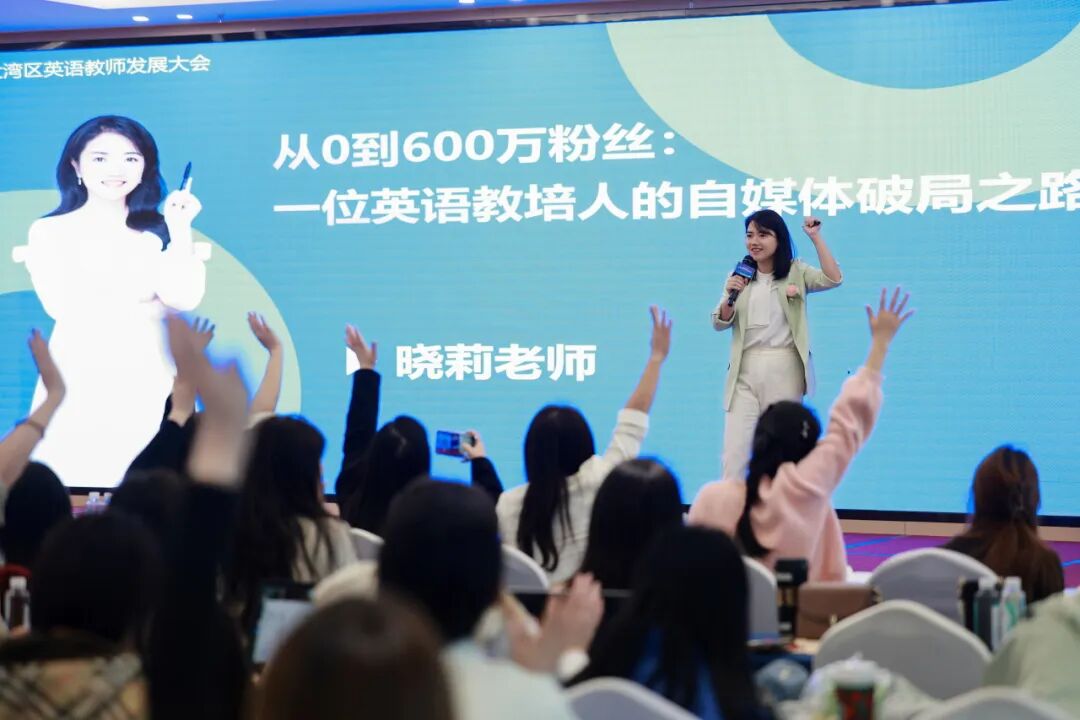 随后,国内头部英语教育自媒体博主、香港中文大学翻译硕士晓莉老师以《从0到600万粉丝:英语教培人做自媒体的实战方法论》为题进行分享,将现场气氛推向高潮。她毫无保留地分享了内容创作、账号运营、流量转化的全链条经验,为英语教师们突破职业边界、开拓新的发展空间提供了全新视野。