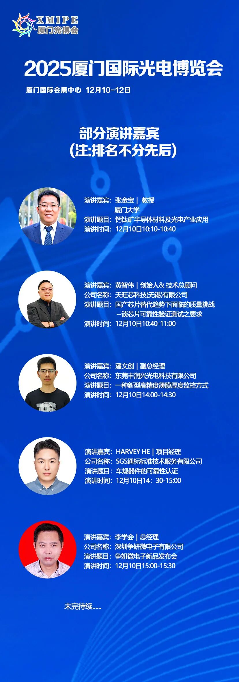 2025厦门国际光电博览会将于12月10-12日在厦门国际会展中心B3、B4馆举行。