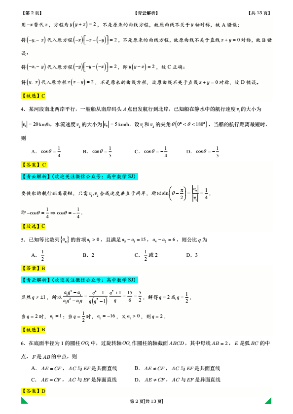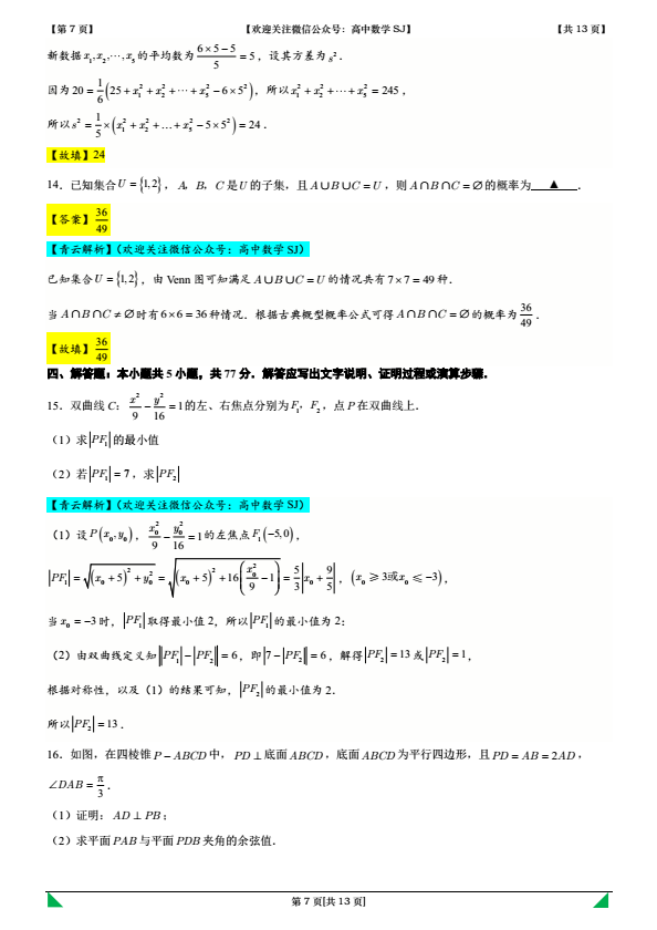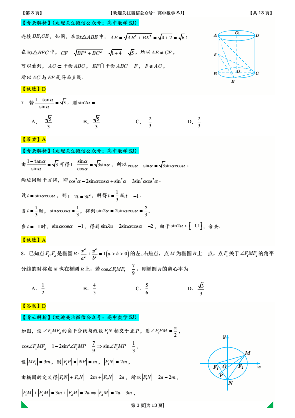 感谢您关注“高中数学SJ”公众号,如您尚未关注,请点击上方蓝字关注我们,获取更多知识方法!我们相互学习,共同提高