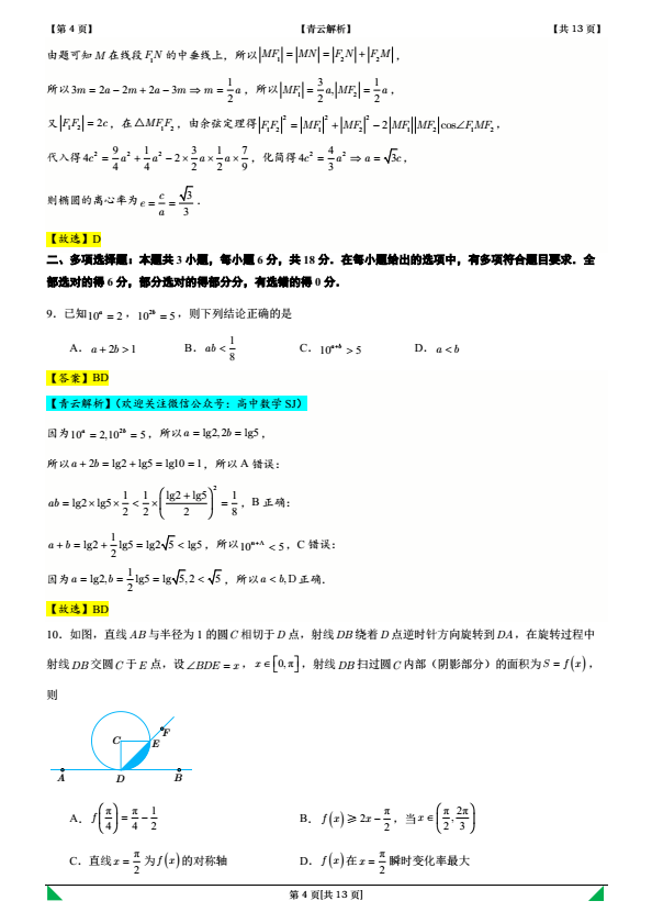 2026届高三数学解析