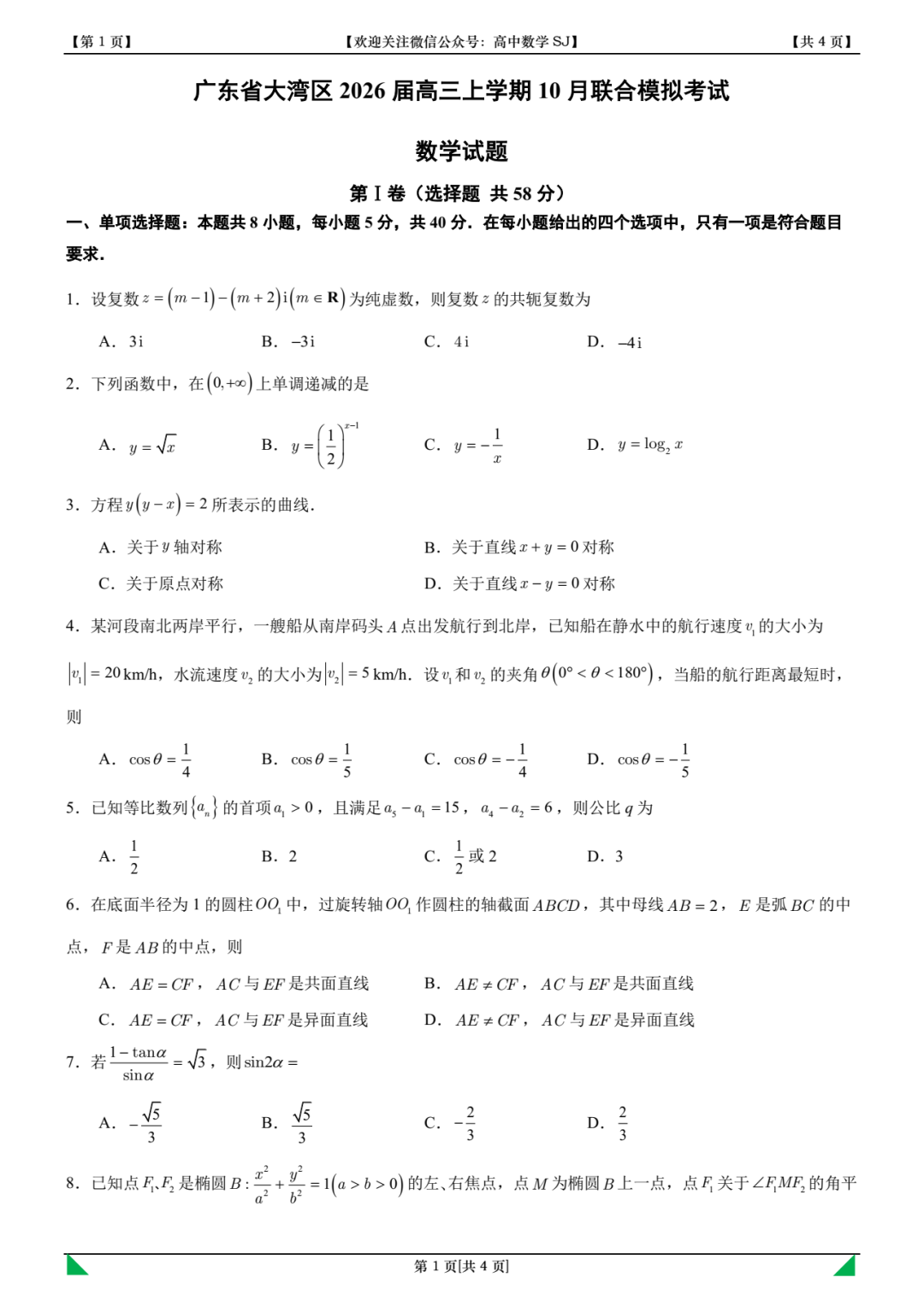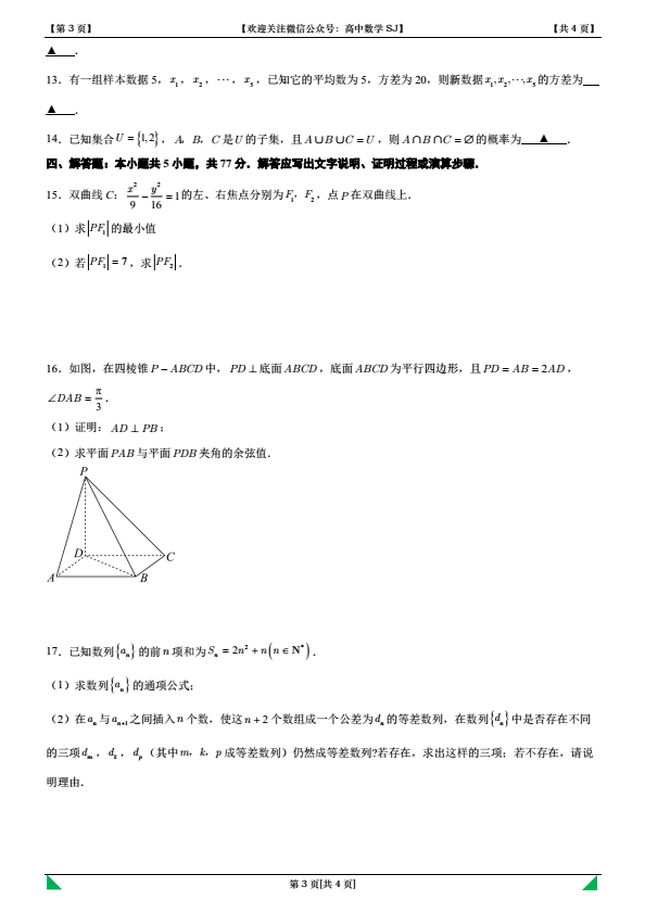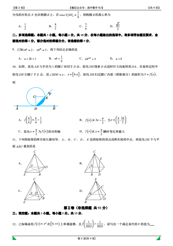 电子版领取方式二:有网盘的可以在微信公众号“高中数学SJ”的主页回复关键字:20251023(不要输入试卷名称,而是当天日期)