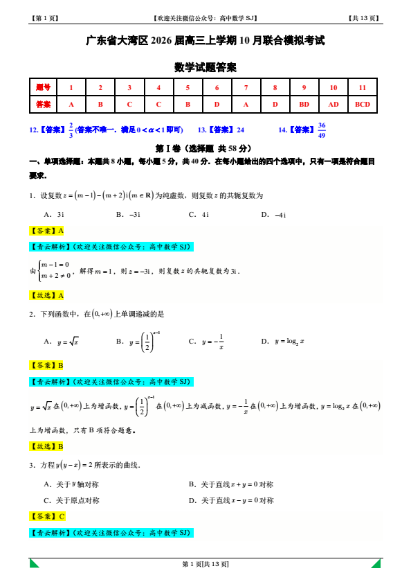 2026届高三第74套【青云解析】广东省大湾区2026届高三上学期10月联合模拟考试.pdf