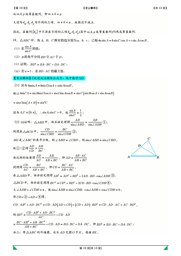 本题考查解三角形,角平分线定理(斯库顿定理)