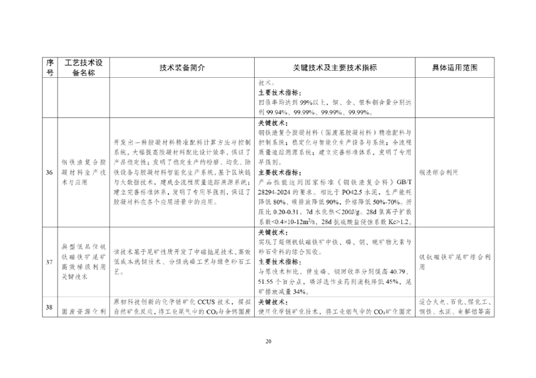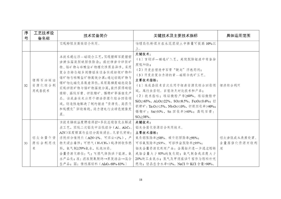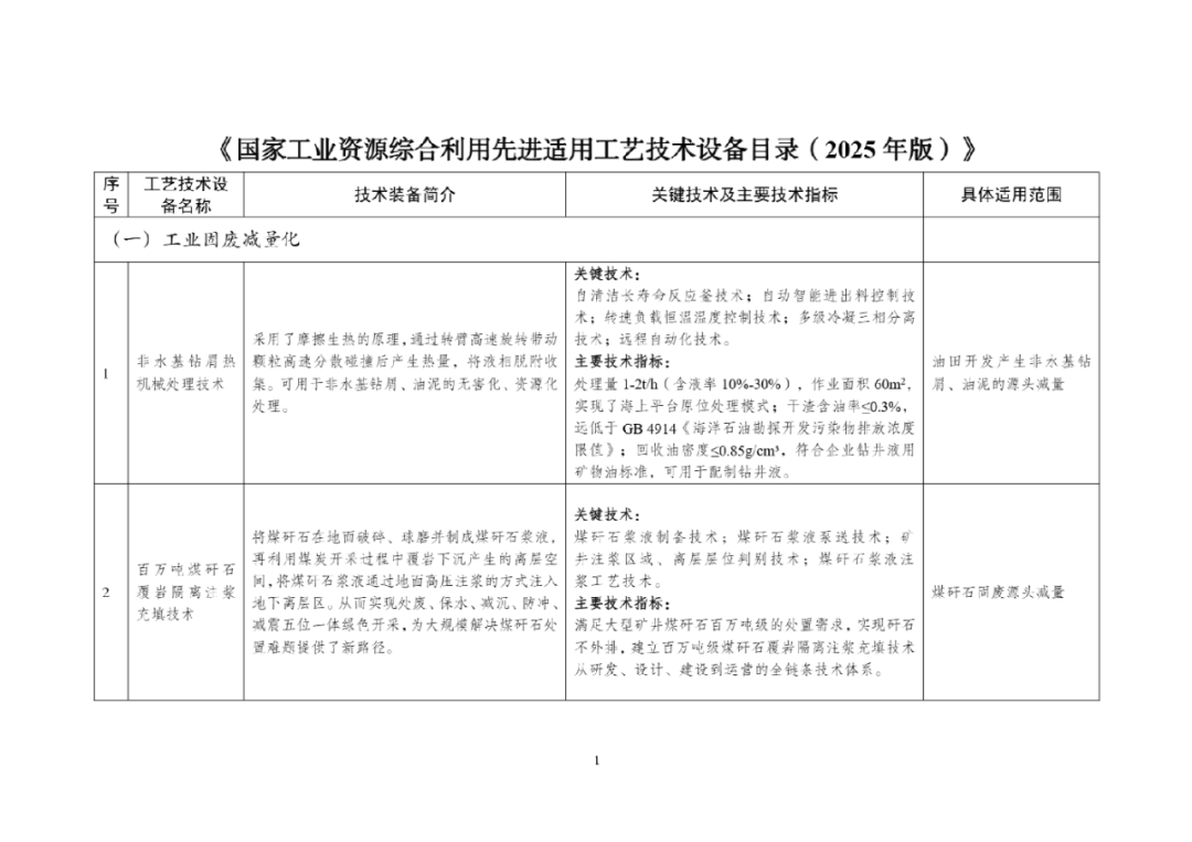 为加快推动工业固废源头减量和规模化利用,提升再生资源综合利用水平,发展高端智能再制造,工业和信息化部、国家发展改革委、生态环境部编制了《国家工业资源综合利用先进适用工艺技术设备目录(2025年版)》,现予公告。