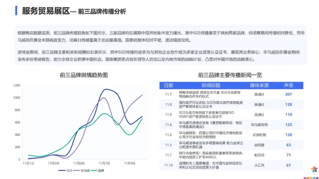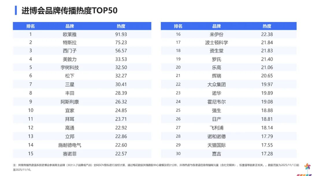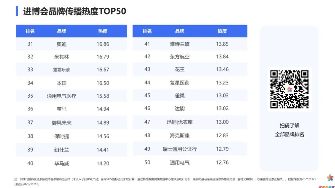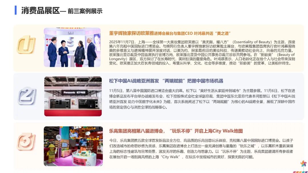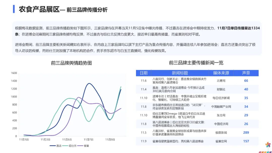 这一传播走势表明,公众对进博会的关注主要集中在开幕与闭幕两个关键节点,展会中期的舆论焦点则更多转向各参展品牌发布的新技术与新产品,对进博会本身的整体关注相对趋于平缓。
