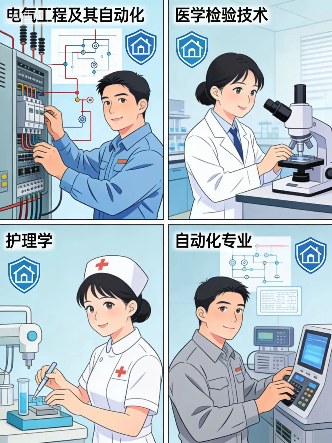 对多数家长而言,好就业、稳发展是核心诉求。电气工程及其自动化就业落实率95%,是公认铁饭碗,适配新能源与智能电网需求,国家电网等国企岗位稳定,晋升清晰,平均月薪7108元;医学检验技术与护理学,受老龄化推动需求持续稳定,公立医院、疾控中心岗位充足,职业生命周期长,医学检验本科月薪6k-8k,护理学专科生便有大量岗位,适合成绩中等、有爱心、有耐心的孩子;自动化专业是工业4.0核心,对接智能制造与机器人领域,就业面广需求递增,本科月薪7248元,研究生达14689元,3年以上经验薪资涨幅显著,发展后劲十足。