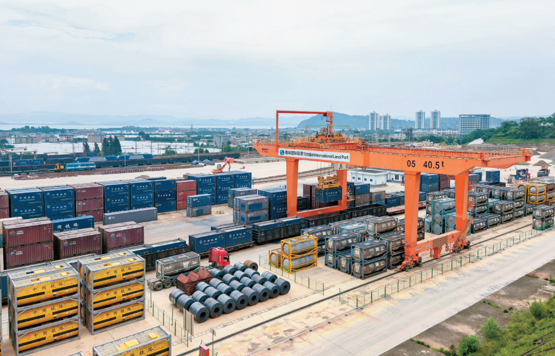 中老铁路开通运营4年来,实现了从通到畅、从畅到旺的蜕变,累计发送旅客超6300万人次、运输货物超7300万吨,覆盖19个国家和地区,已成为名副其实的“黄金大通道”。图为云南腾俊国际陆港货场。云南日报记者 段晓瑞/摄