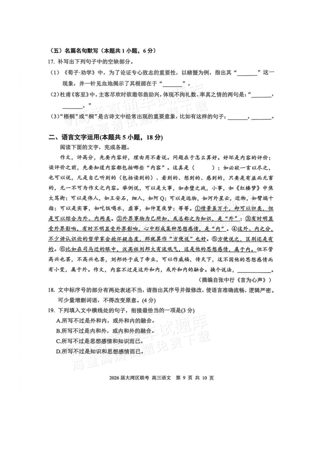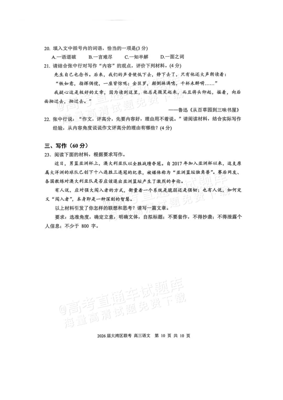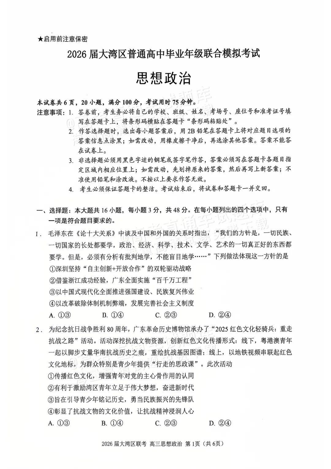 2026届广东高三天河区一模、大湾区10月联考、广东高三五校10月联考正火热开考中。广东中学生已经整理了考后各科的最新试题及答案,同学们只需在公众号对话框回复关键词 广东天河】【大湾区】,即可对答案估分,下载试题重复练习。