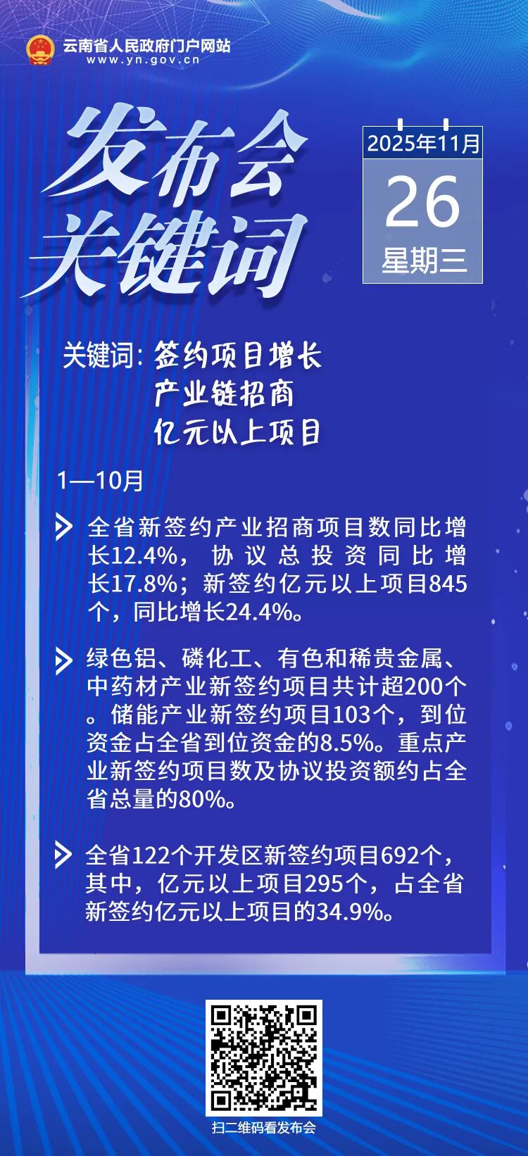 11月26日下午,2025年全省招商引资工作新闻发布会在云南海埂会堂召开,相关部门介绍有关工作情况,并回答记者提问。