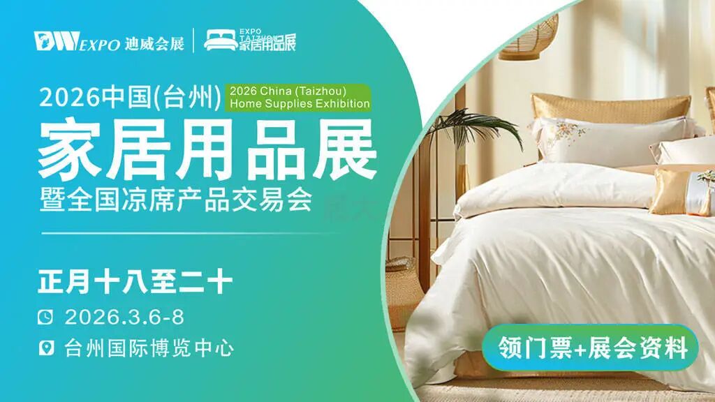 2026台州家居用品展暨全国凉席产品交易会,将于3月6-8日在国际博览中心举办,门票免费领取!