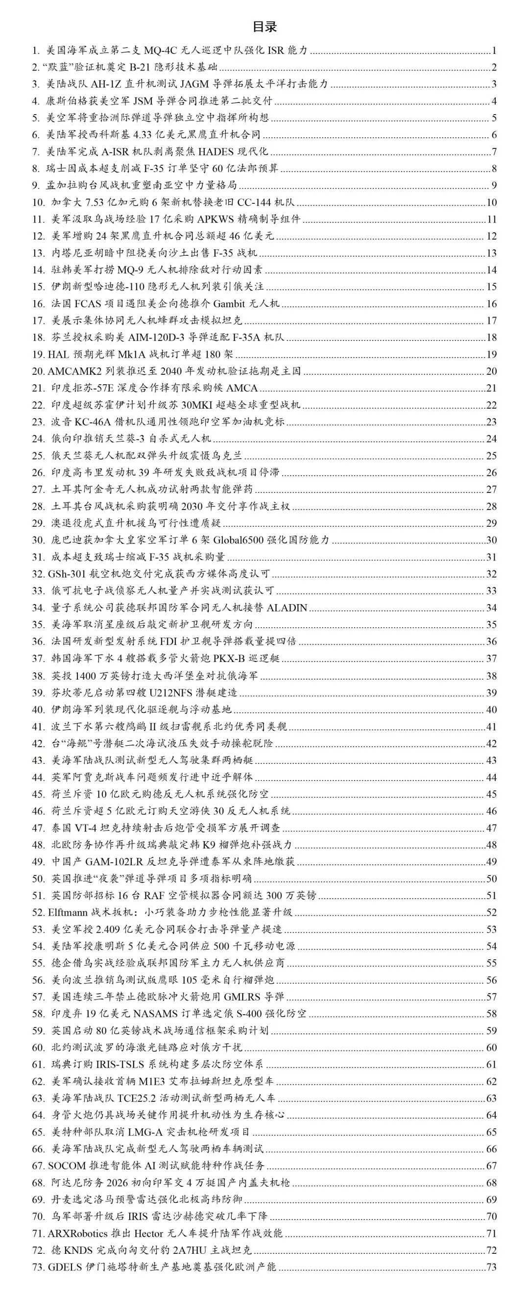 《全球防务动态》系列专刊国内独家每日发布涵盖航天领域、武器装备、军事热点、人工智能、先进制造等领域的全球动态信息。提供“航天动态专报”、“装备动态专报”、“军事动态专报”、“智造动态专报”以及“航天防务新闻日报”等特色产品模块。工作日每日推送,形成结构化、可编辑的文档,供订阅用户在小程序“智研烽火信息”商城下载。每日及时的动态信息能够有力支持各单位进行要讯报送、军情研究与安全形势分析的需求。