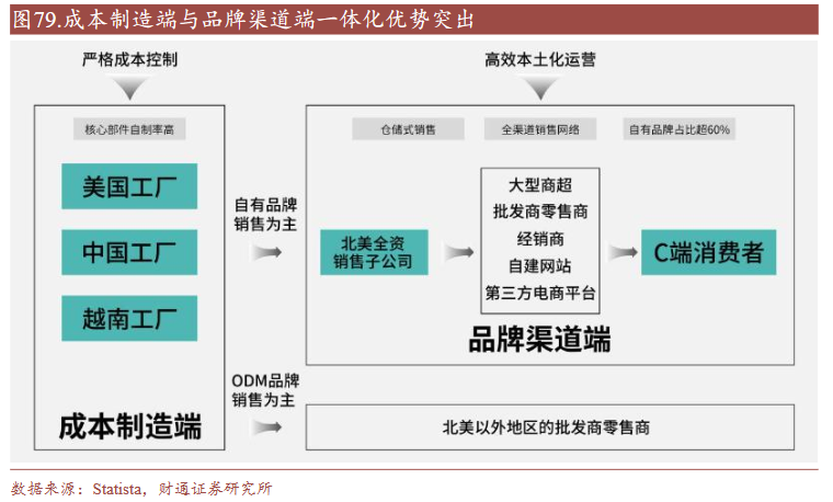 供应链优势:全球布局,总部研发管理、亚太生产制造、欧美渠道完善。未来3年,美线产能逐步外迁,关税减免可进一步拉动利润率上行。