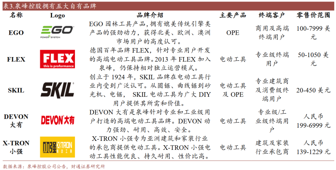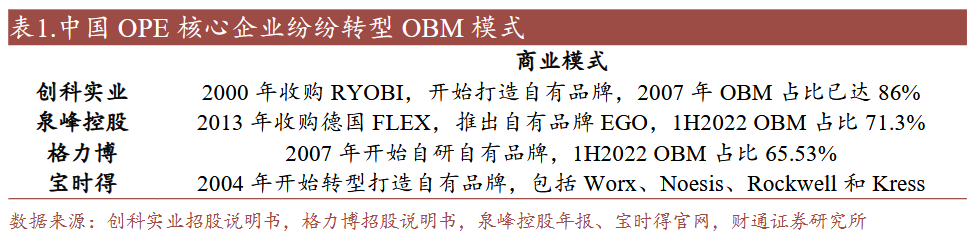 1)研发能力强,EGO品牌已经位于锂电OPE前列。五大自主品牌充分覆盖OPE及电动工具,梯度拉开,兼顾DIY及Pro级别用户。