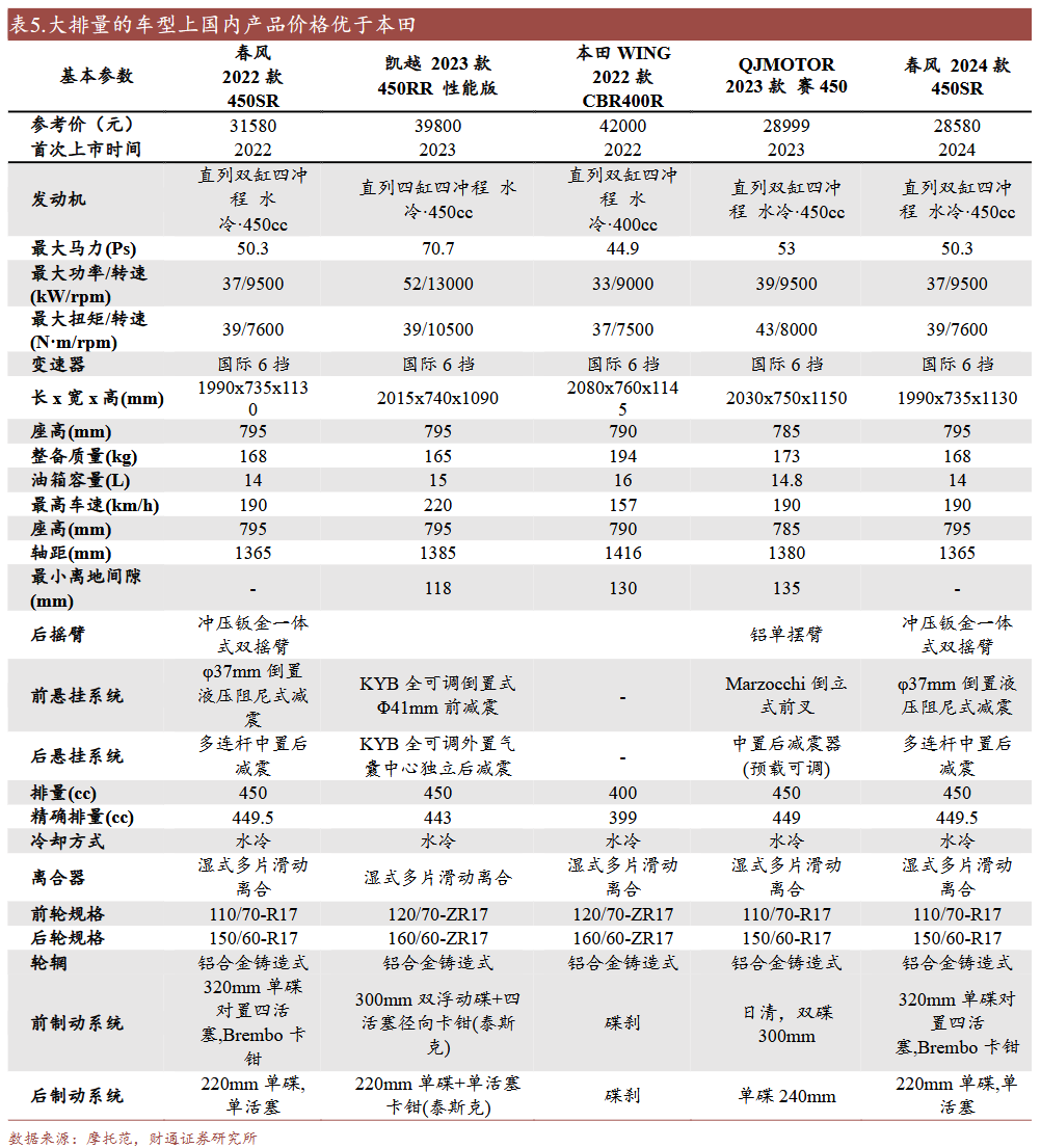- 从价格上来看,国内同规格排量的摩托车通常会比本田便宜,具有性价比优势。