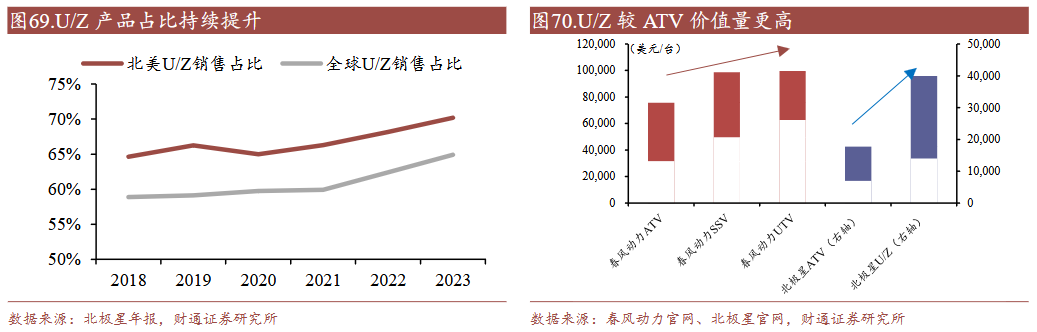 3.3 全地形车:行业集中度较高,高价值量U/Z产品占比逐步提升