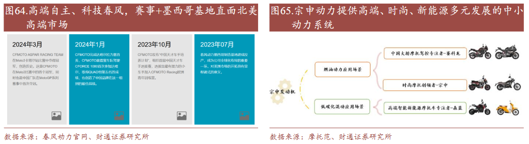 - 摩发板块,顺应摩托车排量中大型化,娱乐化以及电动化,公强创新,快速迭代,推出多个高端、大排量动力产品,紧抓机遇。