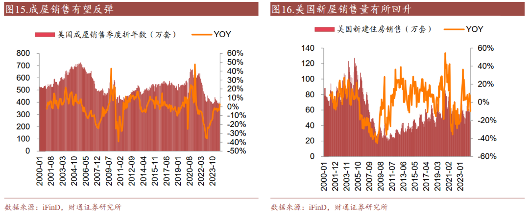从库存周期角度:美国自2022年10月进入主动去库存阶段,按照历史经验,该阶段时间持续4-6个季度左右,即美国1Q24初进入被动去库存阶段,企业订单逐渐好转。同时叠加美联储进入降息周期,有望促进经济复苏。