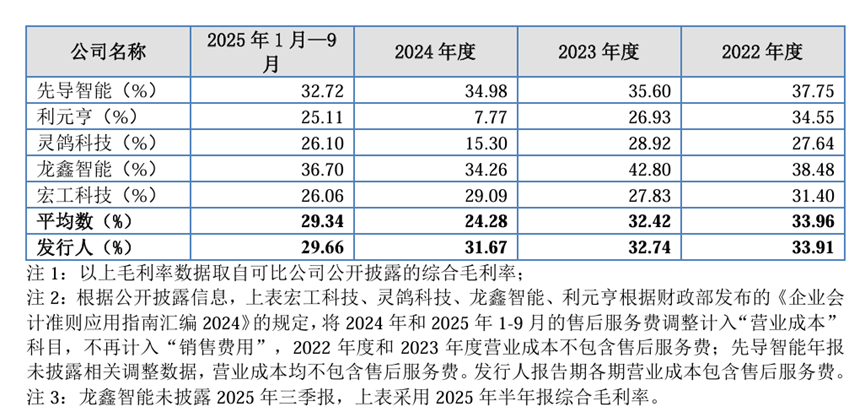 2025年1-9月,公司综合毛利率与同行业可比公司平均水平不存在较大差异。