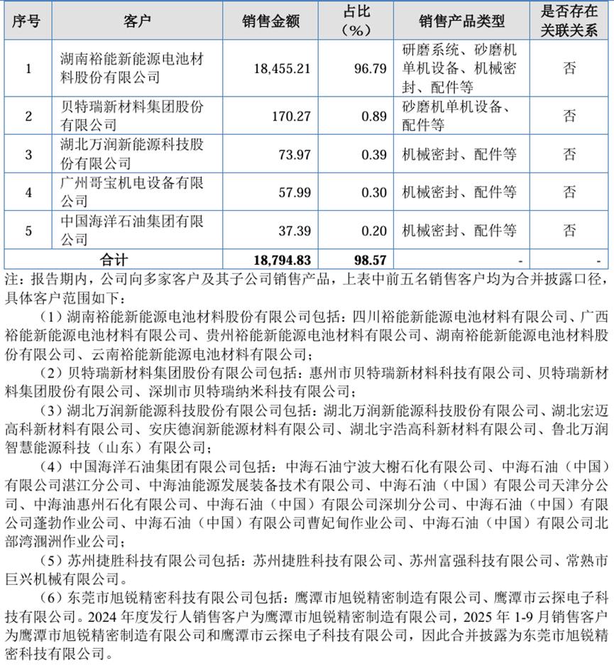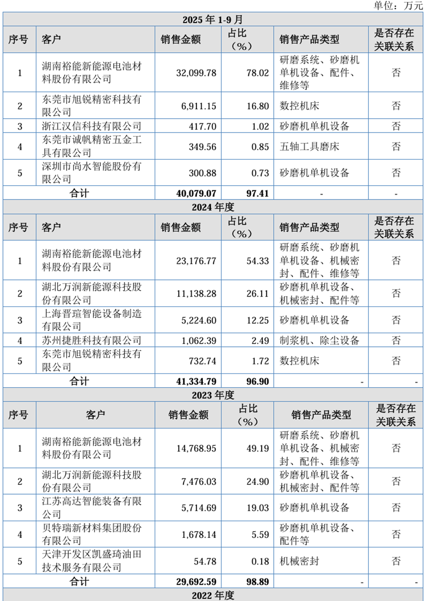 公司纳米砂磨机产品已取得欧洲CE认证,具备欧洲市场的拓展能力。凭借过硬的技术水平、丰富的行业经验和优质的技术服务,经过多年的技术积累与市场开拓,公司与湖南裕能、万润新能、贝特瑞、比亚迪、中海油等知名锂电池材料企业和国内大型央企建立良好的合作关系,在锂电池材料研磨系统领域具有较高的品牌知名度和较强的竞争力。