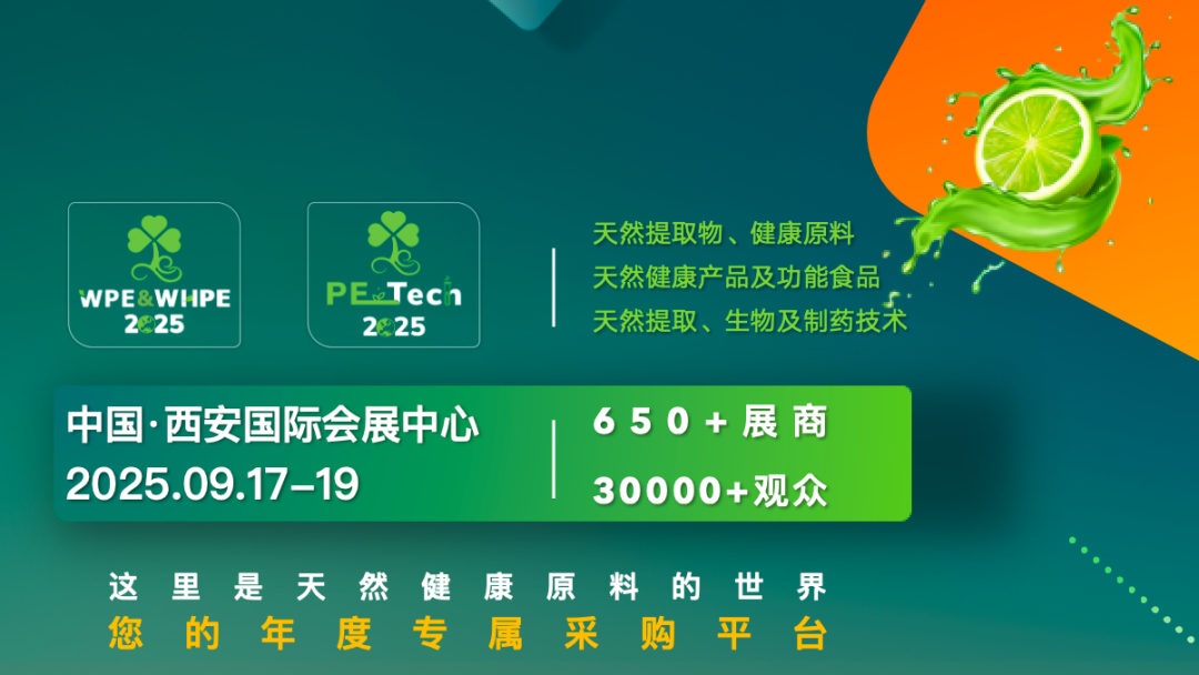 2025年9月17-19日,第五届中国西部国际天然提取物展( WPE&WHPE 2025)将在中国西安国际会展中心盛大启幕。