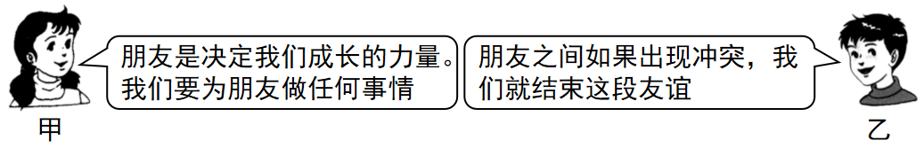 同学间的交往总是让我们难忘。如何与同学交往,甲、乙两名同学有不同的看法。