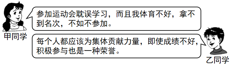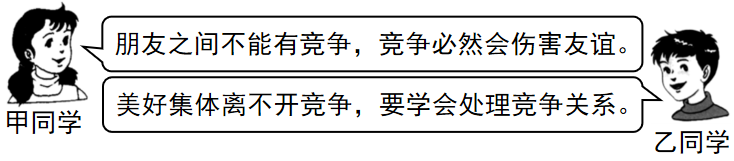 竞争无处不在,任何一个人都无法避免竞争;竞争无时不有,每时每刻都存在着竞争。面对竞争,甲乙两名同学有不同的看法。