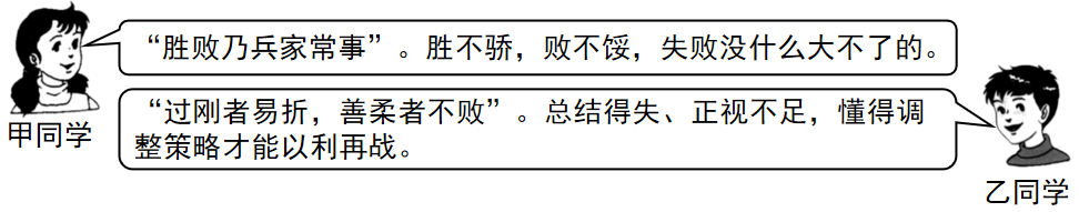 在日常学习和生活中,我们难免会经历考试成绩起伏、比赛失利、目标未达成等情况,围绕“如何面对失败”,两位同学发表了以下观点。
