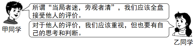 在日常生活中,我们不可避免地会接收到来自他人的各种评价。对于他人的评价,甲、乙两名同学有着各自的看法。