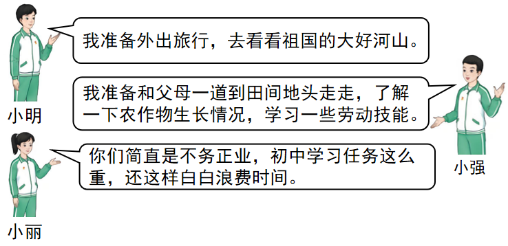 结合小明和小强的假期安排,请你运用所学知识,对小丽的观点进行评析。