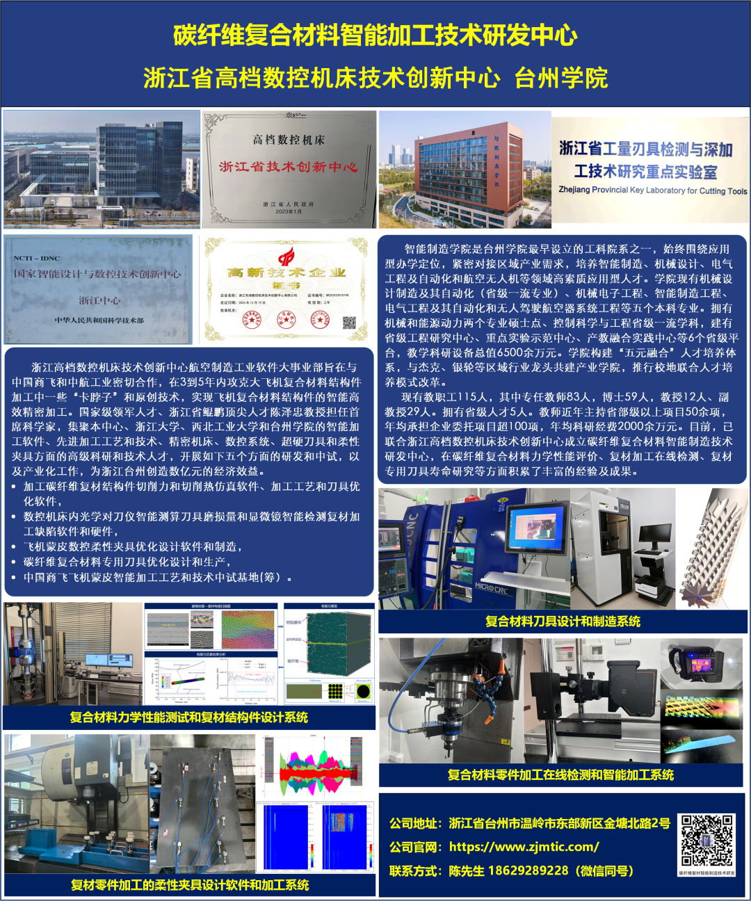 目前,已联合浙江高档数控机床技术创新中心成立碳纤维复合材料智能制造技术研发中心,在碳纤维复合材料力学性能评价、复材加工在线检测、复材专用刀具寿命研究等方面积累了丰富的经验及成果。