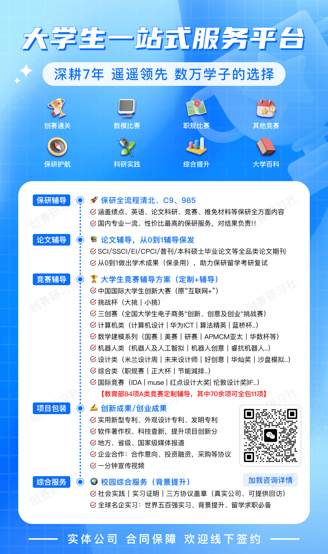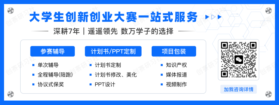 获取近六年【挑战杯、中国国际大学生创新大赛(原“互联网+”)、三创赛、大创】省国奖案例 ⬇️ 可扫码下单(或添加我微信:Kr30265Kr03256),感谢支持✨