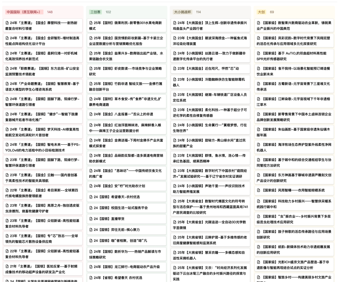 点击蓝色文字查看👉:400+份近六年(2020-2025)省国奖互联网+、大小挑战杯、三创赛大创正版完整学习案例(计划书+PPT)+每年更新(永久)
