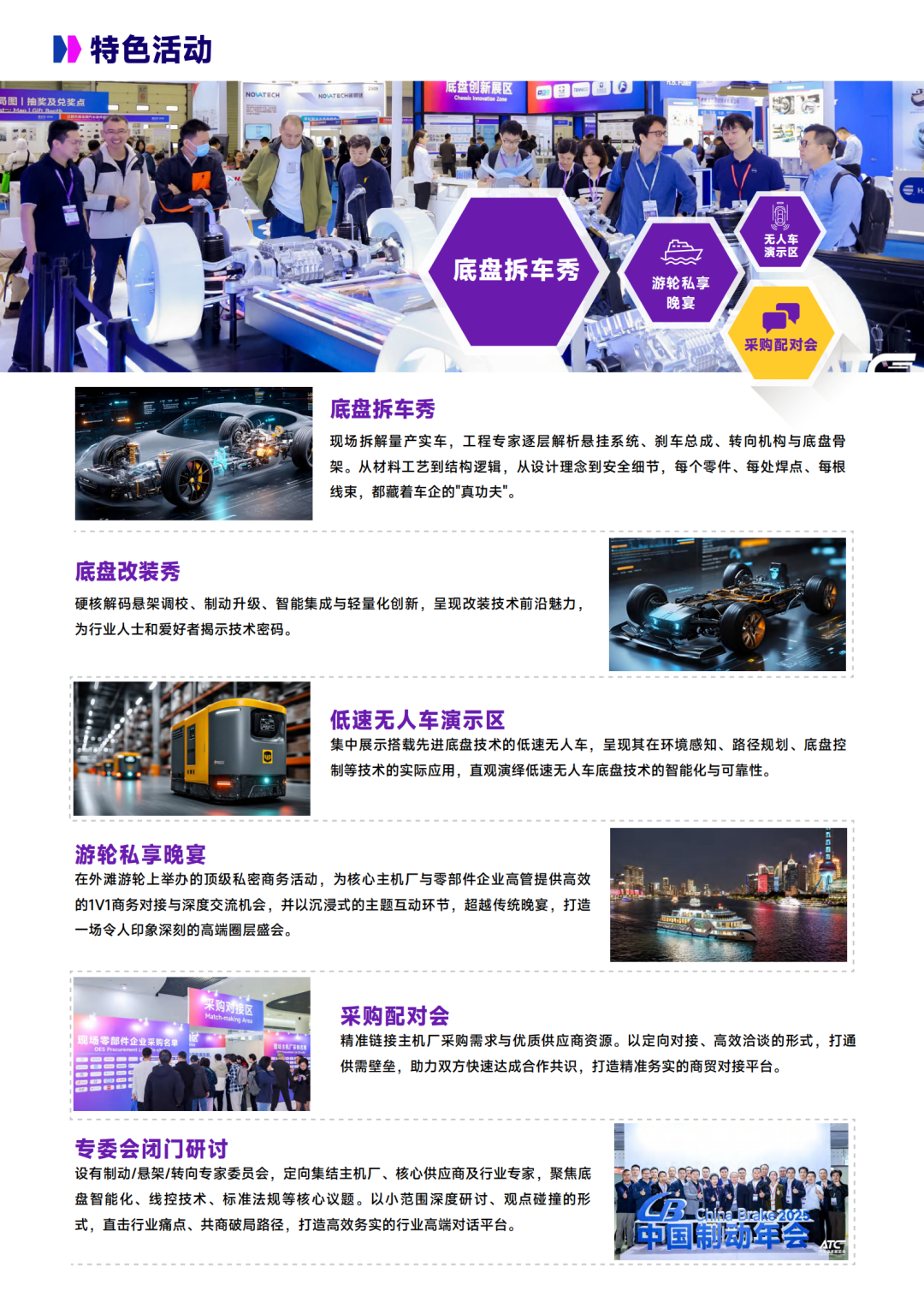 2026年,ATC汽车底盘展将携十年积淀联动同期汽车动力展、汽车测试展、汽车热管理技术展重磅移师上海新国际博览中心,打造汽车核心技术生态的一站式对接平台。展品涵盖制动系统、悬架系统、转向系统、智能底盘、轻量化部件及材料、生产制造等关键领域,全景呈现底盘技术的前沿突破与落地应用成果。同期七大细分领域技术峰会,精准匹配各细分领域痛点,深度解析行业发展趋势,为企业提供高价值的技术交流与战略研判平台。