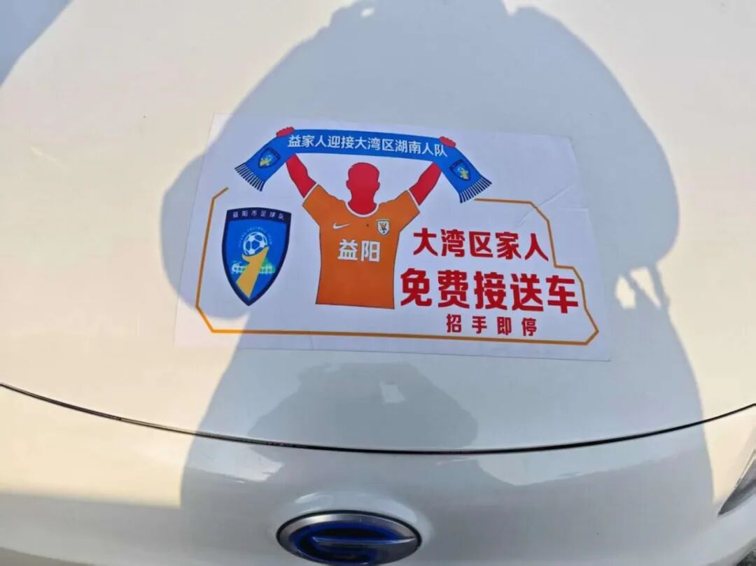益阳本地车主在私家车上粘贴标语,自发接送大湾区返乡观赛球迷