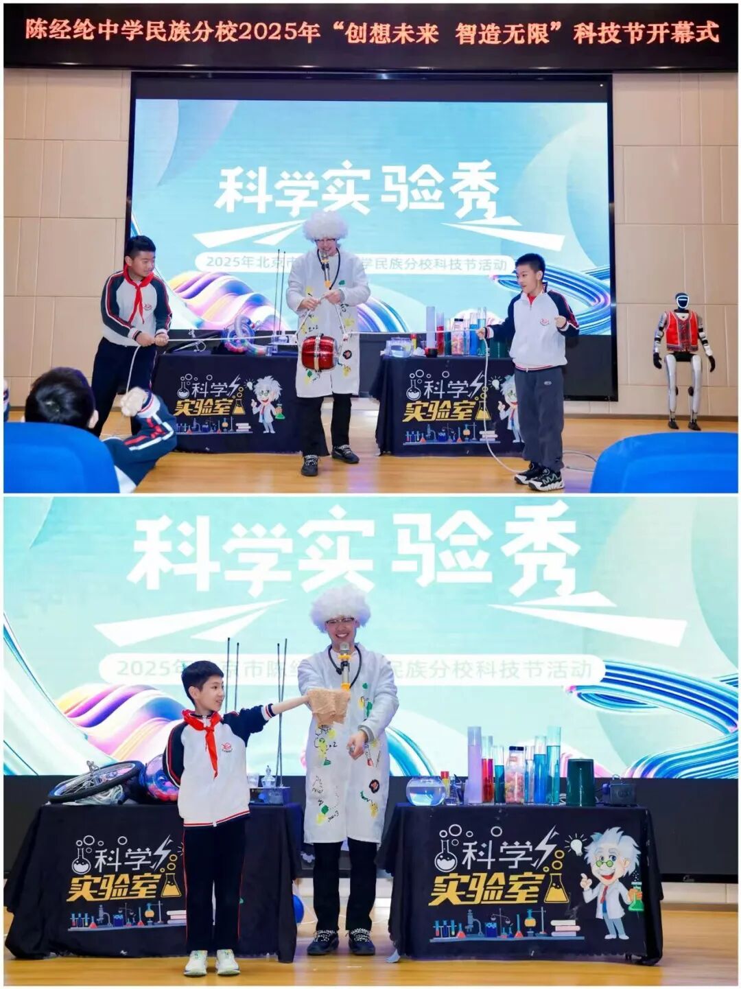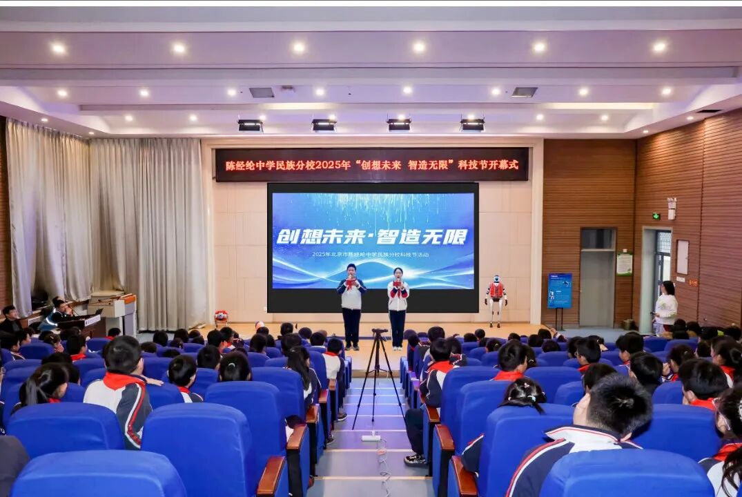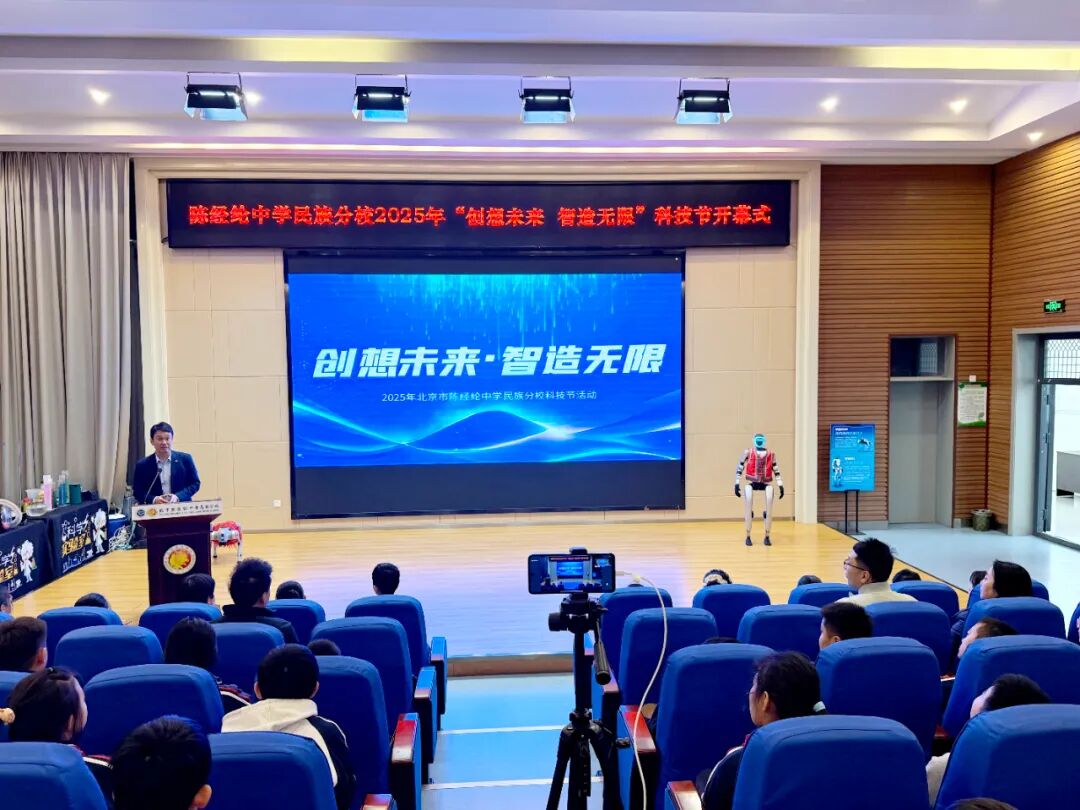 为促进学生科技素养与创新实践能力的全面提升,近日北京市陈经纶中学民族分校以“创想未来,智造无限”为主题举办2025年校园科技节,1-8年级全体师生参加活动。活动涵盖开幕式、互动体验、手工制作和AIGC成果展四大核心板块。