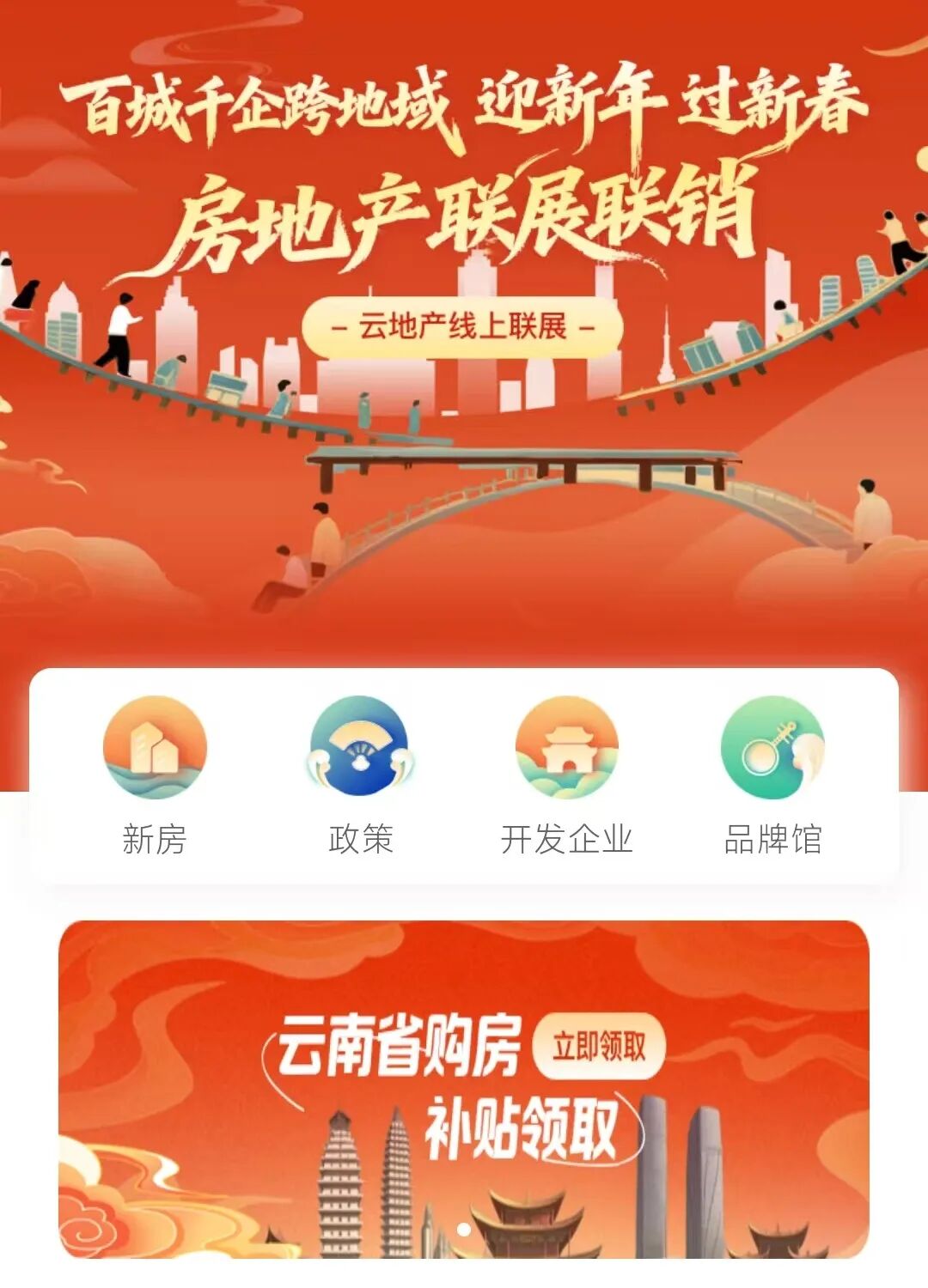 由省房协主要开发运营的“云地产”房地产联展小程序平台(以下简称“‘云地产’小程序”),为全国百城千企房地产联展联销的线上房交会提供核心支持。为进一步增强用户使用体验,“云地产”小程序全新改版升级,在首页醒目位置开设各省(区、市)最新政策咨询窗口,如“云南省购房补贴领取”窗口,该窗口与领取我省购房补贴的官方专属小程序建设银行“一部手机逛商圈”打通数据链路,用户可通过“云地产”小程序一键直达,领取购房补贴。
