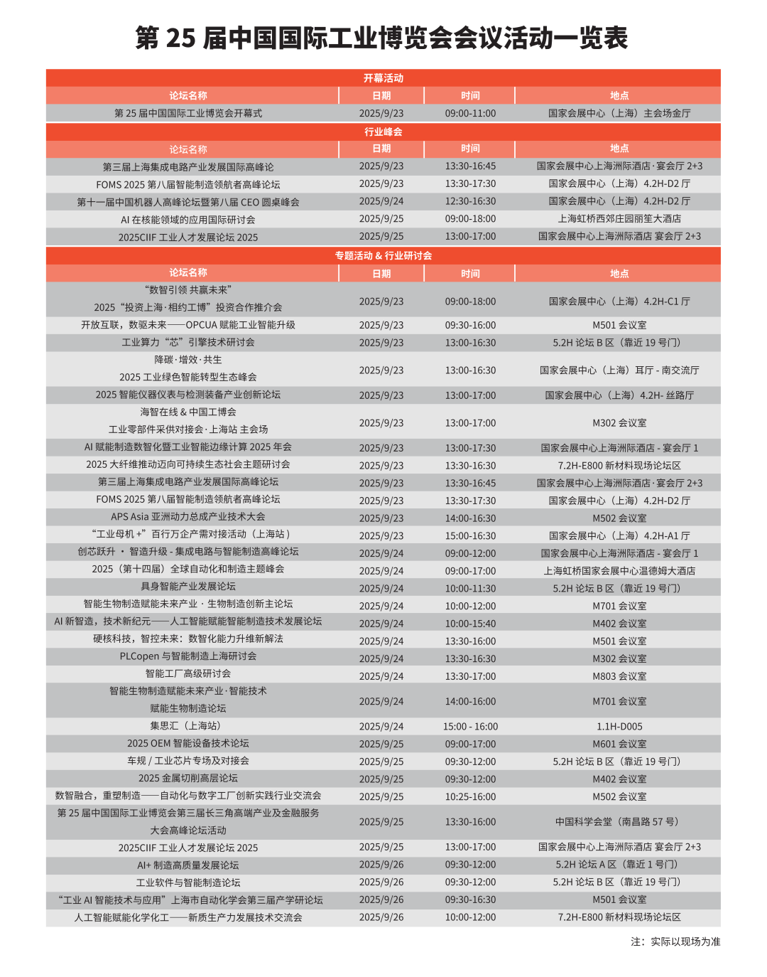 上海新国际博览中心/上海世博展览馆/张江科学会堂/上海世博中心2025年9月会展计划