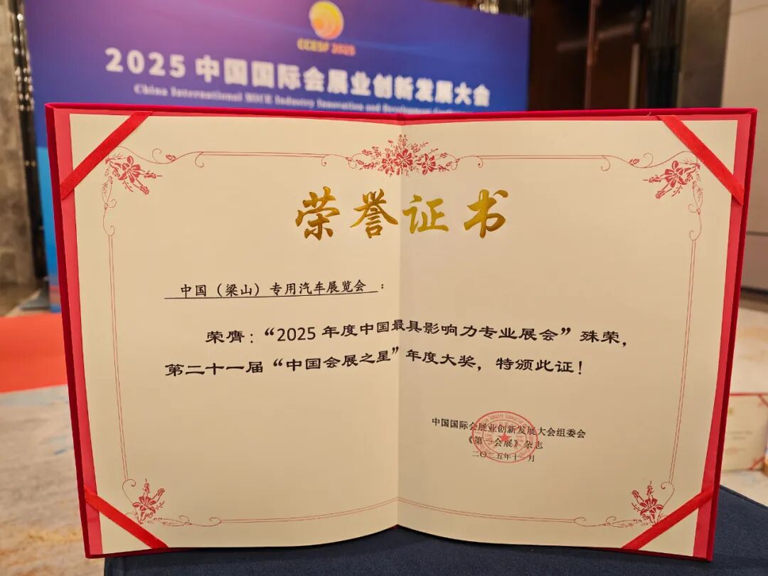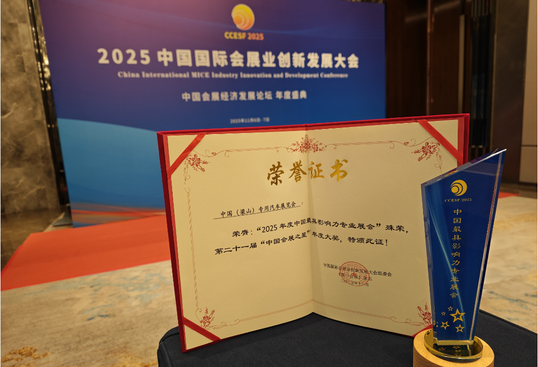 2025年11月7日,在上海盛大揭幕的“”2025年中国会展产业评选活动——致敬先锋▪中国会展之星”颁奖典礼上,评选结果正式公布。中国(梁山)专用汽车展览会凭借“强产业联动、高专业品质、广行业辐射”的卓越成就,成功摘得“2025年度最具影响力展会”桂冠,跃升为专用汽车领域的标杆性荣耀!
