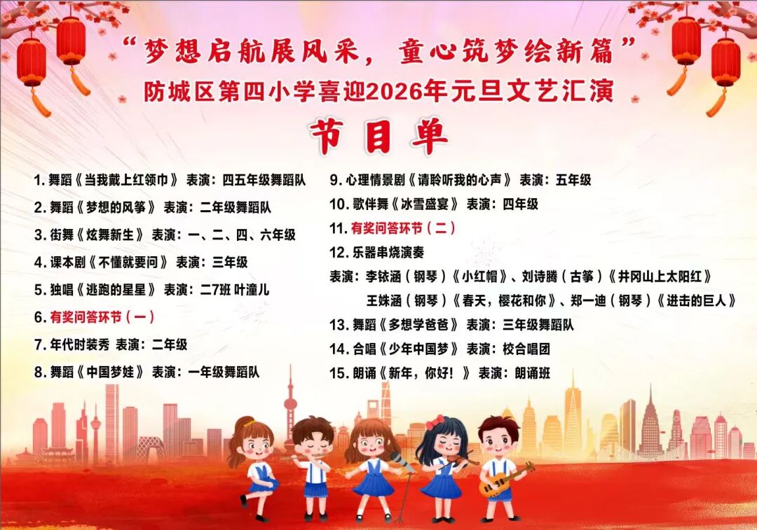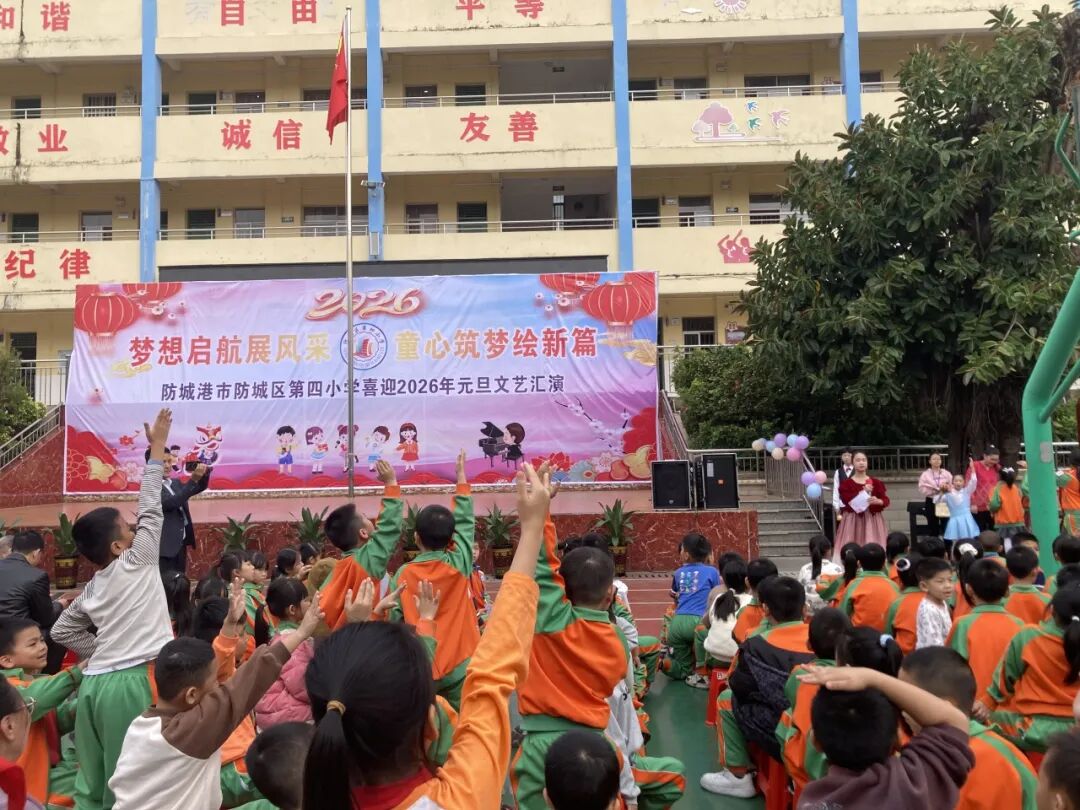 欢乐的时光总是短暂的,在欢声笑语中,防城区第四小学2026年元旦文艺汇演圆满落下帷幕。新的一年,新的征程。学校秉持"立德树人"的教育理念,深耕校园文化建设,助力每一位学子健康快乐成长。