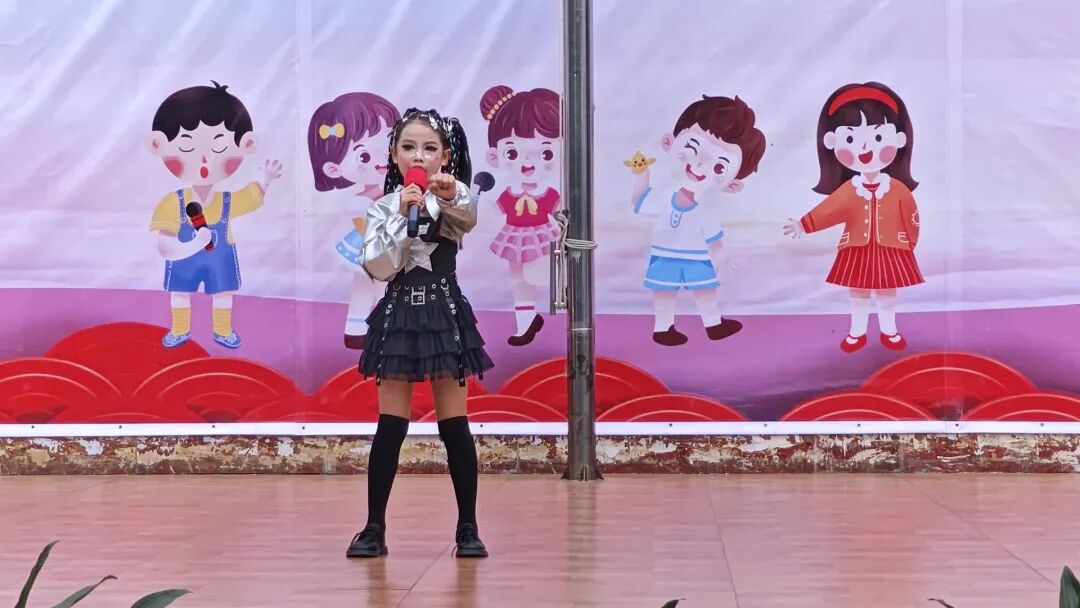 二7班叶潼儿的独唱《逃跑的星星》,歌声清澈婉转,宛如天籁,引得台下掌声连连。