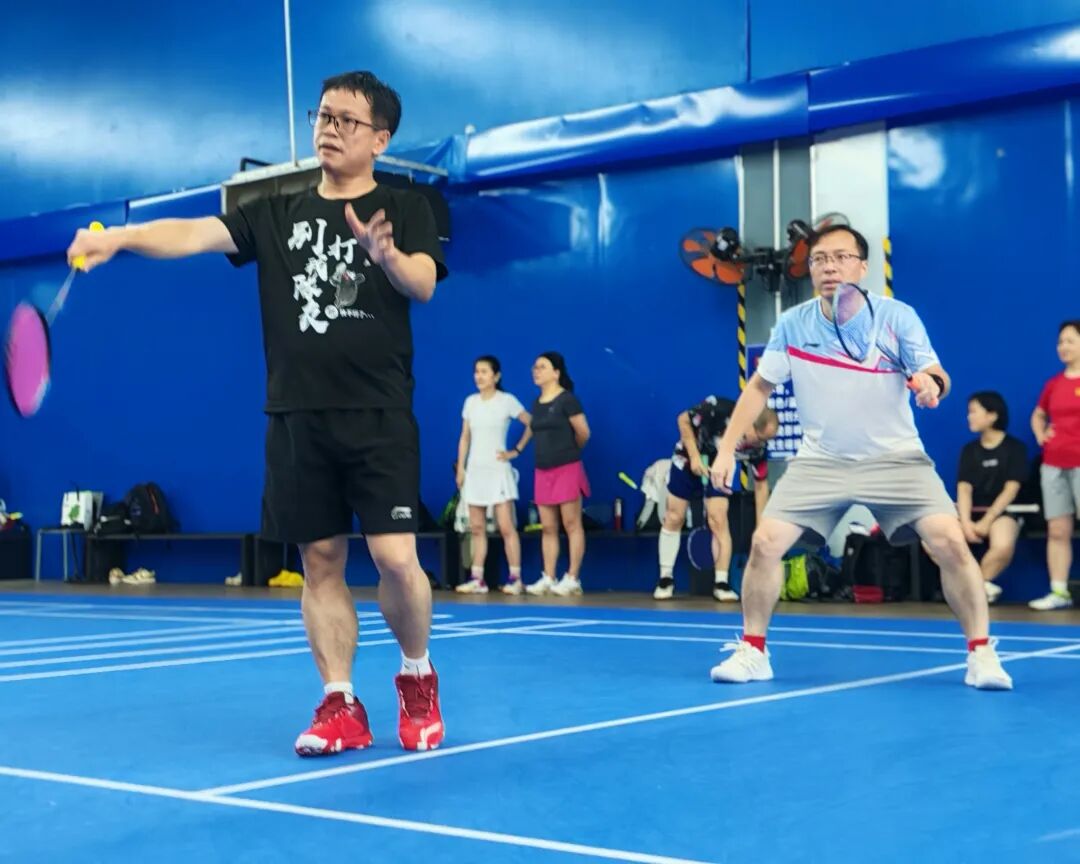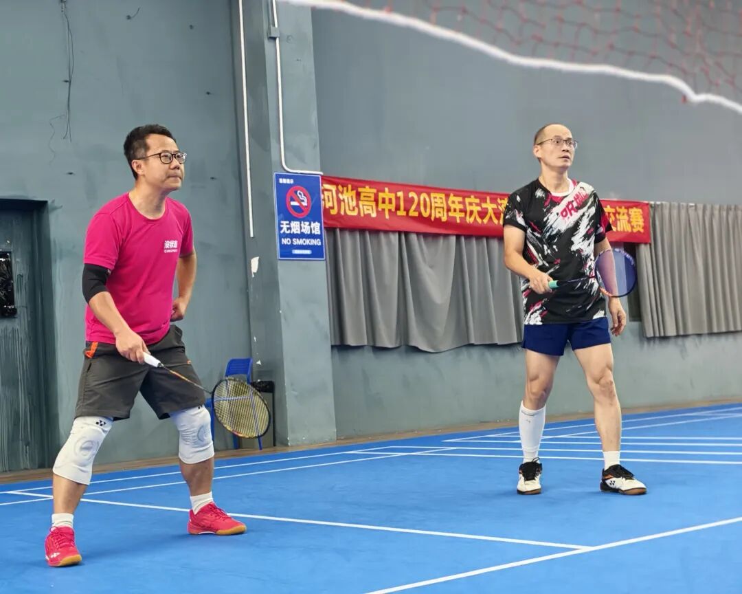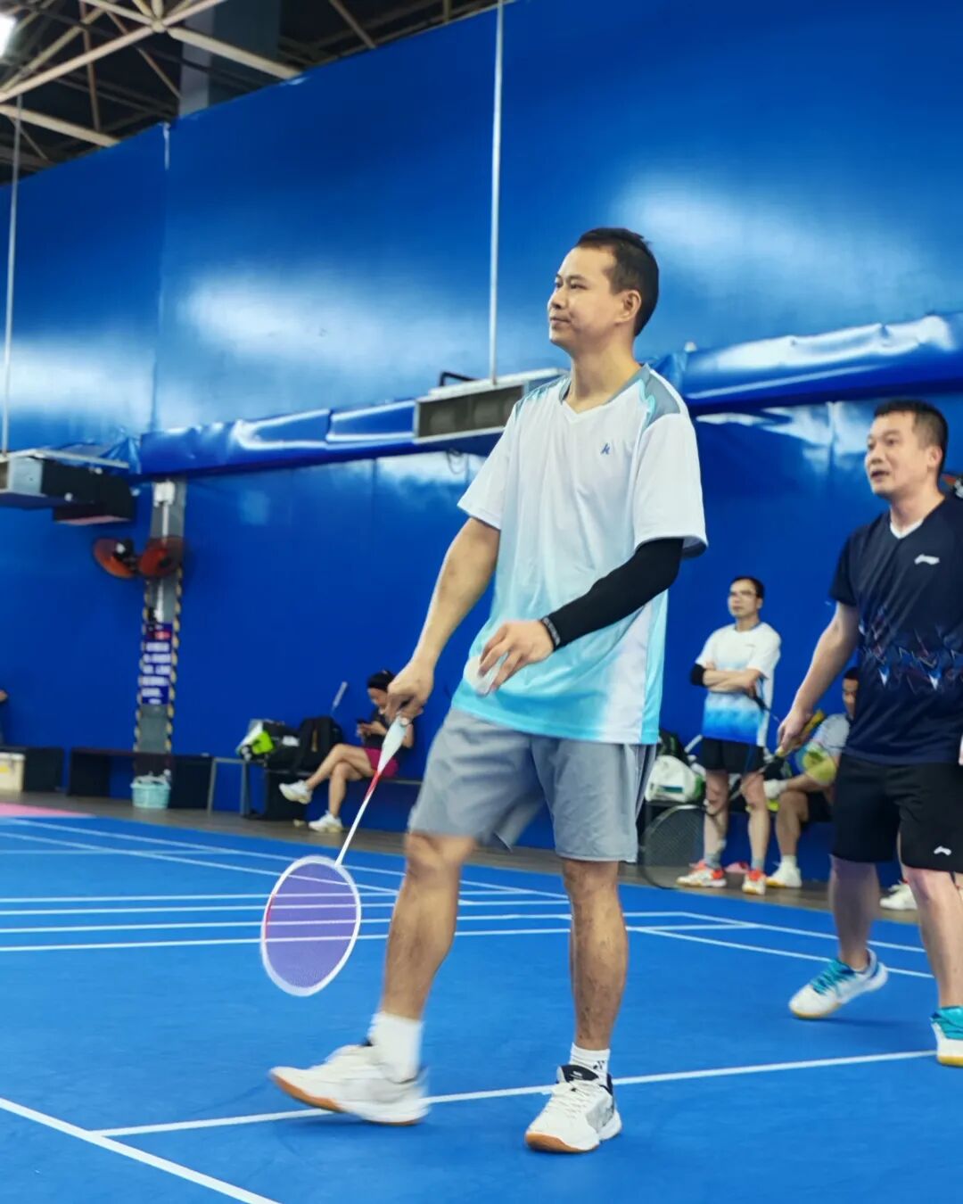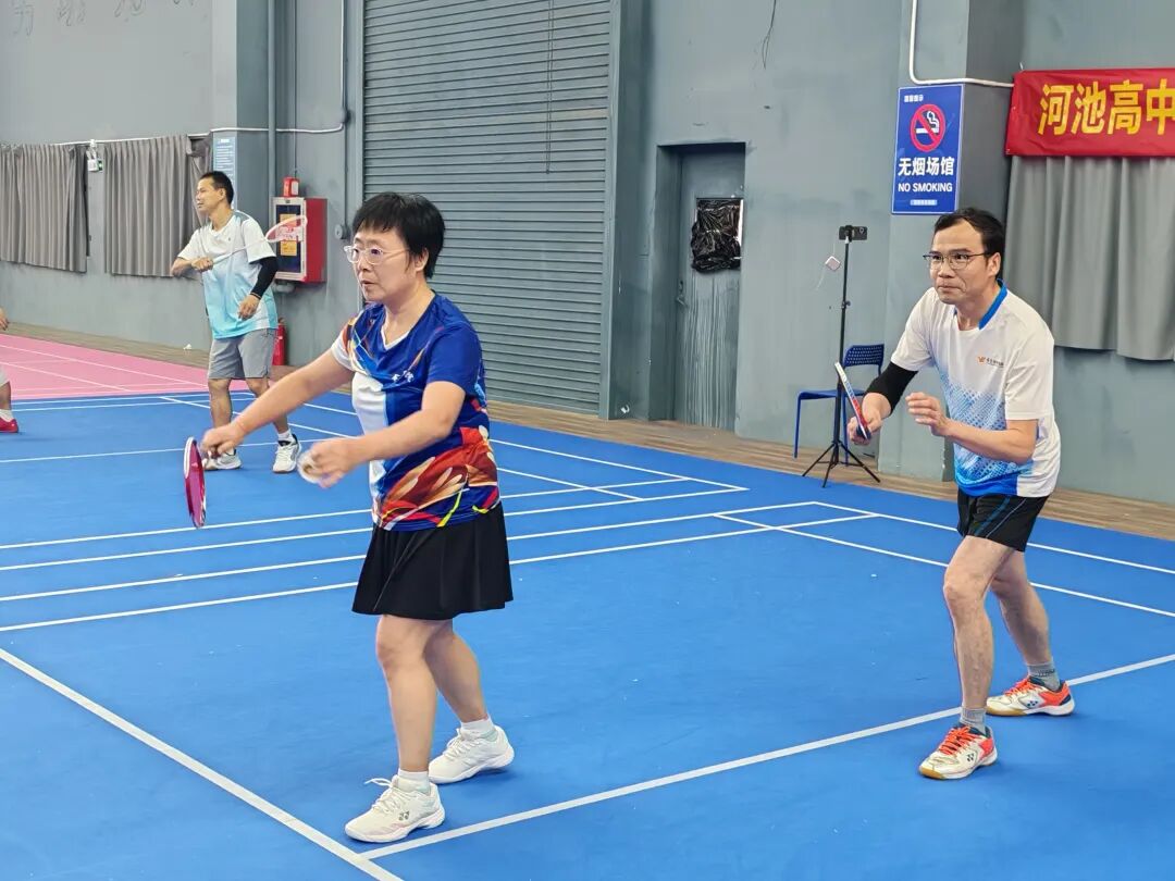 下午1点50,进行了简短的开赛仪式。首先,此次活动的组织者张自然(深圳校友会前秘书长)邀请广州校友会会长章华上台致辞,章会长说明本次友谊赛一是回访深圳,二是通过友谊赛,考察队员,组建大湾区队,并预祝大湾区队在10月份于南宁举行的河池高中120周年庆羽毛球比赛中取得好的成绩。