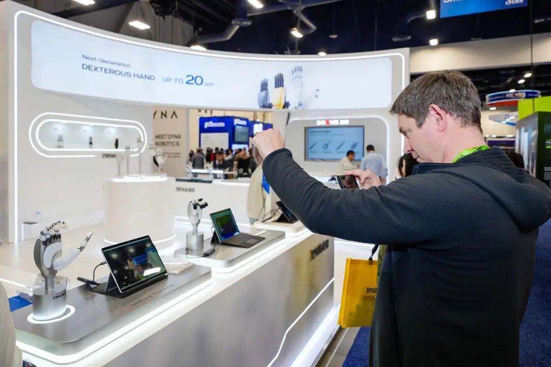 为直观呈现产品性能与产业适配性,ZWHAND展位设置了核心互动体验区。在“低延迟遥操作”体验区,体验者通过VR设备与数据手套构建人机交互链路,可直观感知远端机械手对细微动作的同步响应,展现了产品在远程作业等高端特种场景的应用前景。开展首日,该展位便吸引了国际行业人士与观众的关注,不少体验者对产品的自由度与操作精度给予积极反馈,部分国际人形机器人企业已与品牌达成初步对接意向。