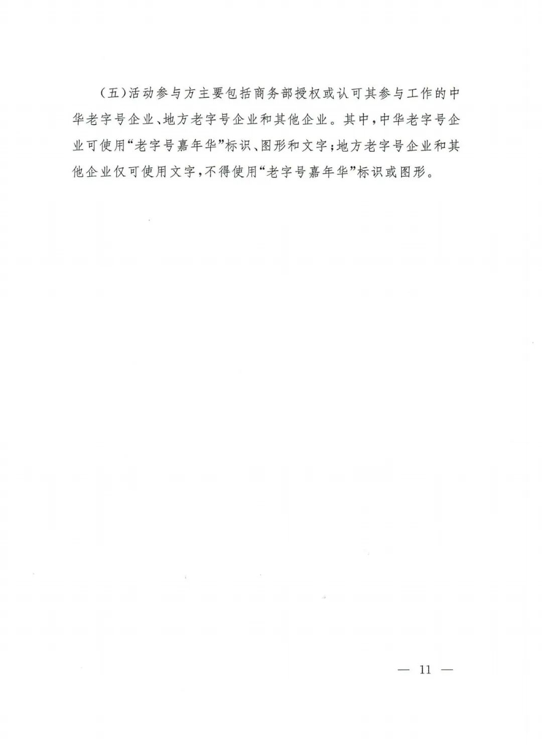 商务部组织确定了一批跨区域、全国性的重点活动(附件1)。各地和相关活动组织方要在坚持自愿原则的基础上积极组织老字号参与,避免增加企业负担。要坚持勤俭节约、安全生产有关要求,确保活动稳妥有序、取得实效。在相关活动中要规范使用“老字号嘉年华”标识(使用要求见附件2),充分利用“老字号数字博物馆”等平台加强宣传推广,推动成果转化。