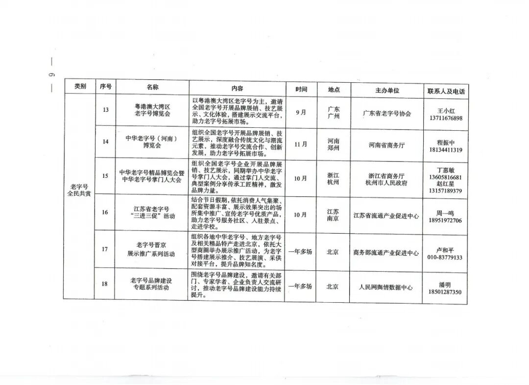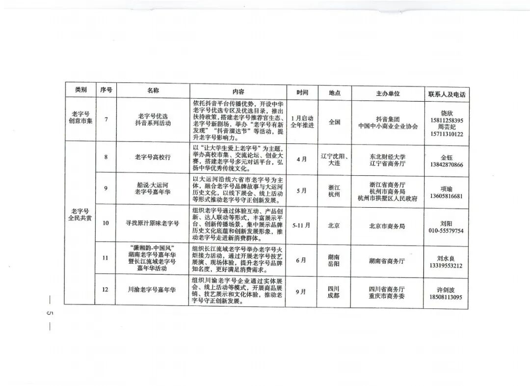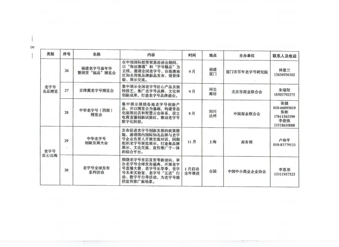 2.老字号全民共赏。围绕端午、国庆等法定假期及“金九银十”等消费节点,组织开展“老字号进万家”等专题促销活动,支持新媒体平台开展直播探店、达人分享等专题活动及主题沙龙、“潮品”首发、掌门人对话等特色活动,通过商圈快闪、社区展销、校园市集等形式,推动老字号全方位融入居民生活。