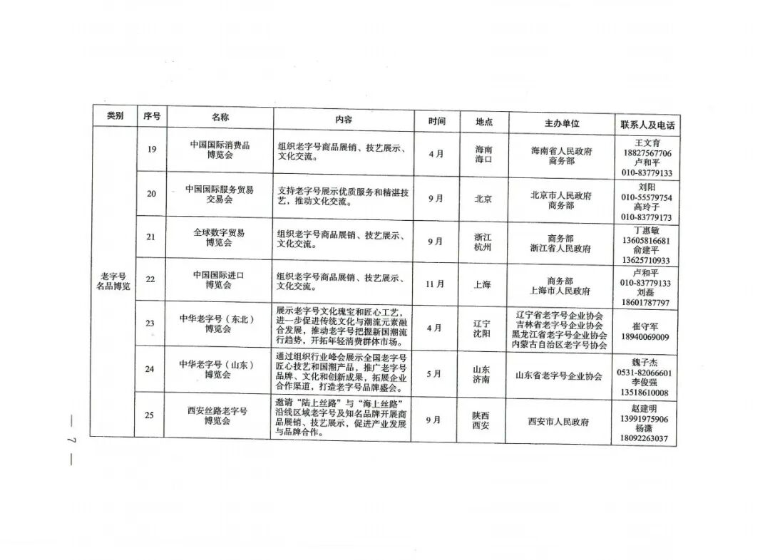 3.老字号名品博览。依托进博会、消博会、服贸会、数贸会等大型展会平台集中展示富含地域特色和文化内涵的老字号“镇店之宝”和“传世臻品”,支持有条件的地方举办老字号品牌路演、技艺巡演、文化展演等专题活动,积极展示老字号文化内涵和品牌形象。