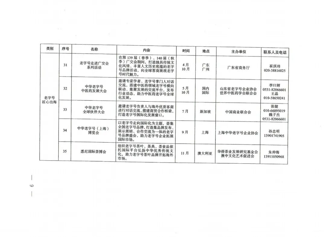 4.老字号匠心出海。支持老字号参与国际展会、圆桌对话、交流对接等活动,鼓励老字号通过跨境电商等方式拓展国际市场,充分展示老字号在工艺设计、产品质量方面的核心竞争力,推动中外品牌交流合作、融合发展,提升老字号在全球市场的影响力与美誉度,带动更多国货“潮品”扬帆出海、开拓市场。