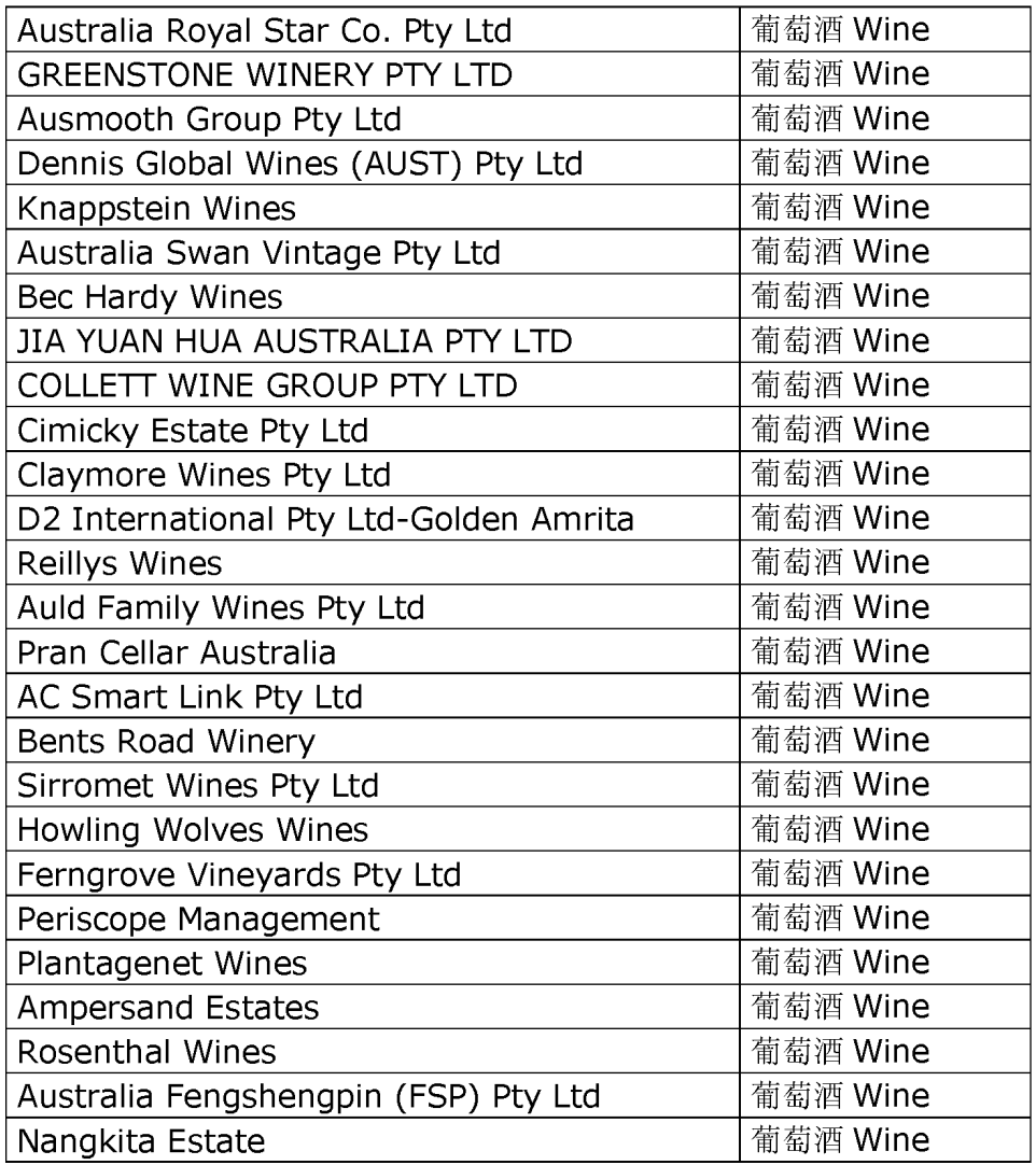 此外,澳大利亚还有 9 家消费品企业参展,具体展商名单如下: